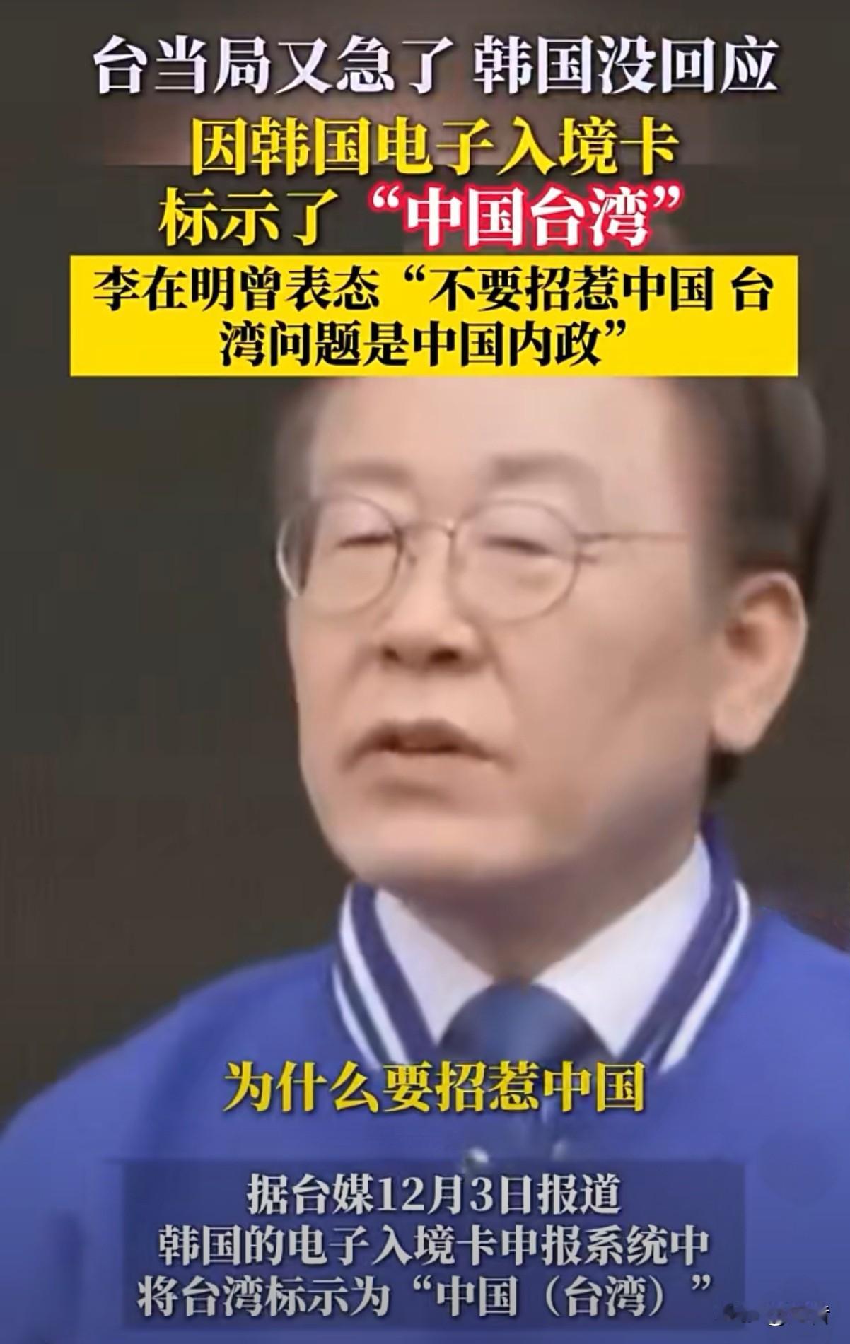 韩国学聪明了! 办了一件天大的好事。 韩国电子入境卡申报系统中,直接将台湾标示为中国的台湾。 万万没想到,台当局立马就跳出来强烈指责韩国。 韩国直接就对台当局翻白眼,严厉警告台当局认清形势。 不得不说,韩国总统李在明很硬气,看问题看的透彻。 关键节点,站队很重要,目前就能说明现在的我们确实强大。 在国际上,有地位,有绝对的发言权,不用过多的看别人的脸色行事。