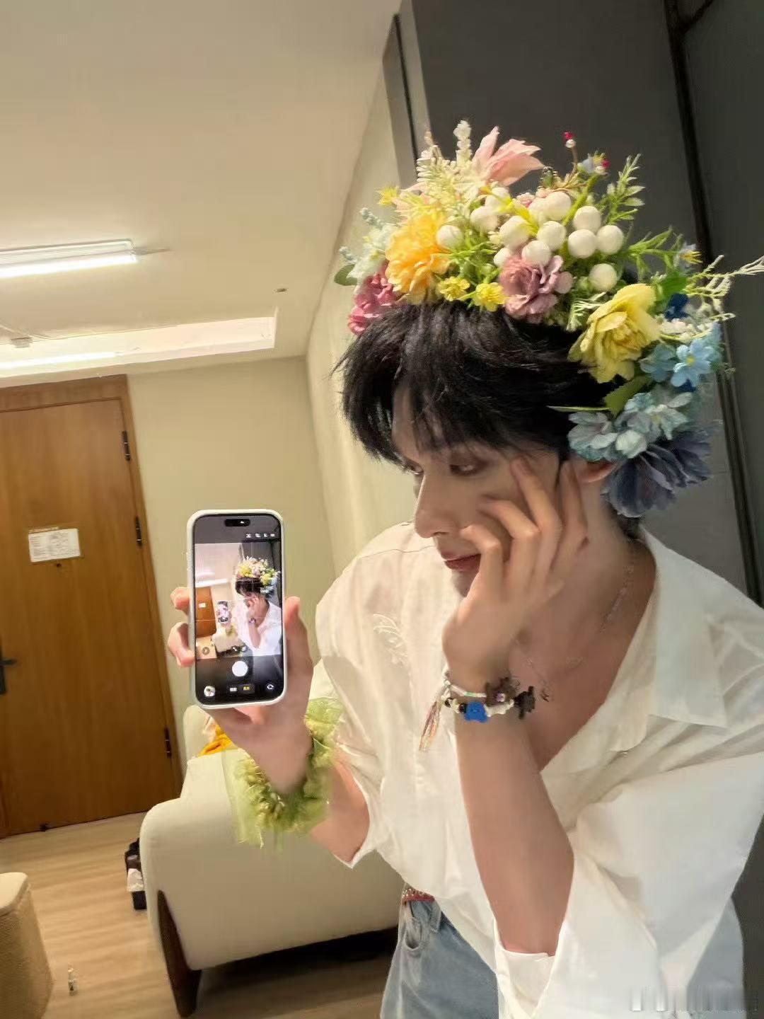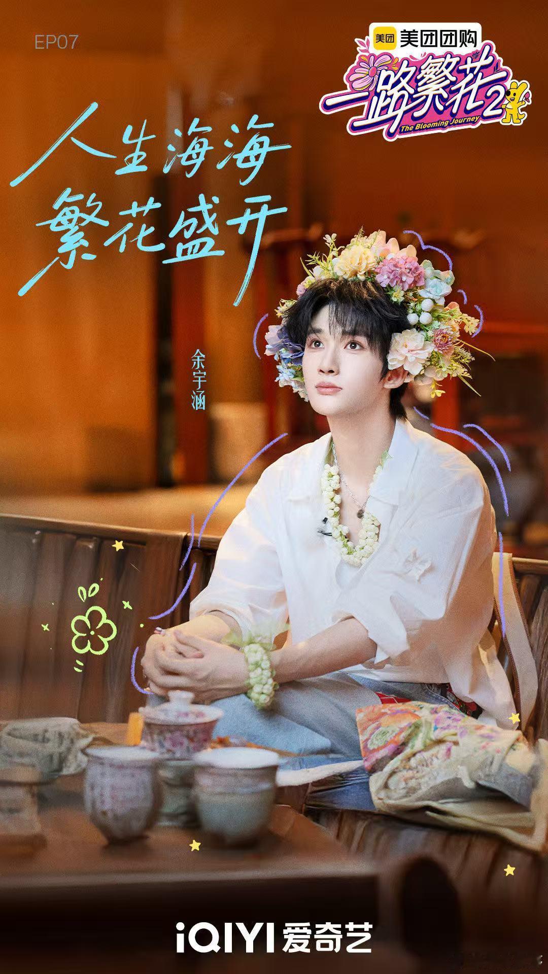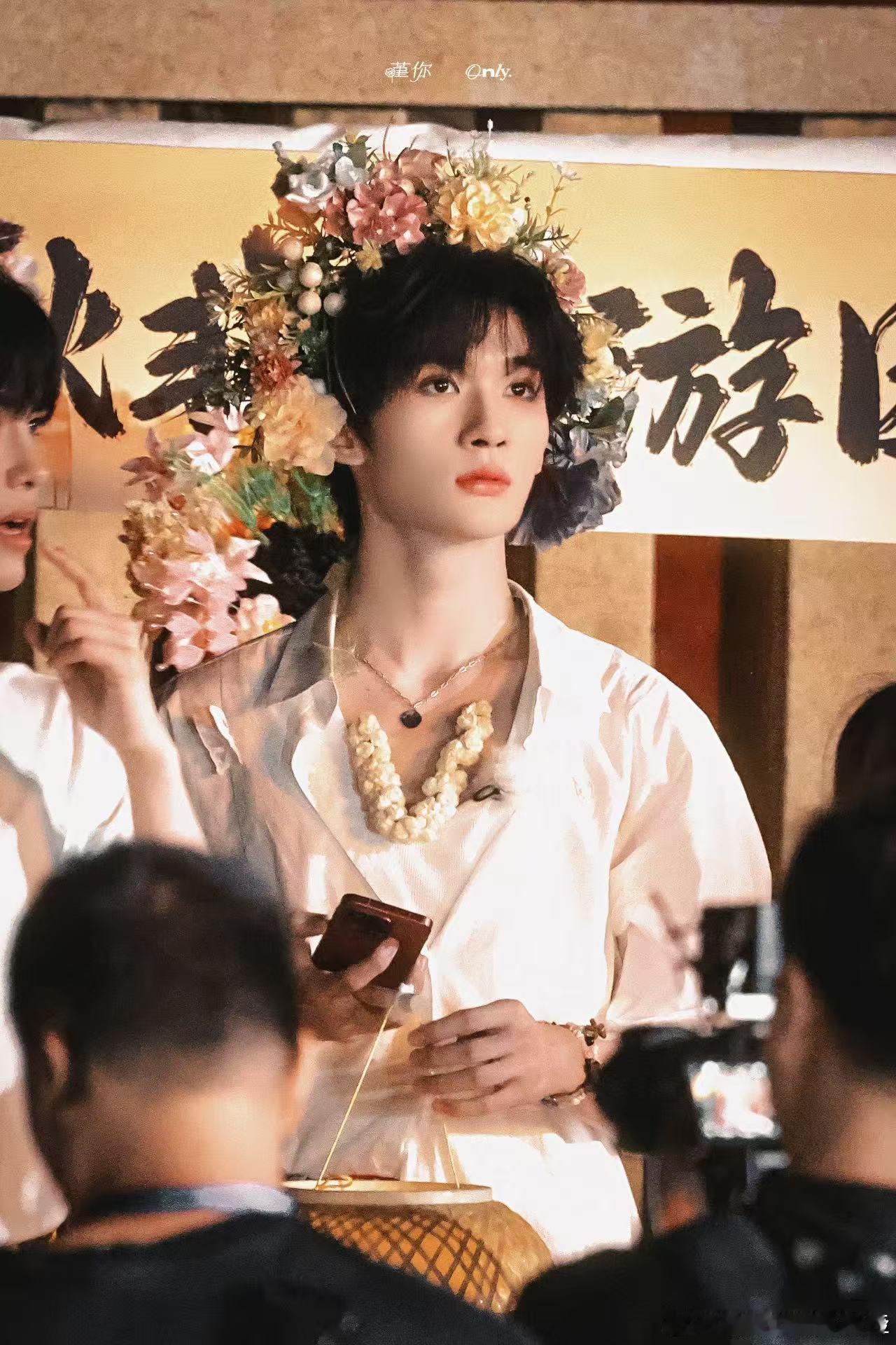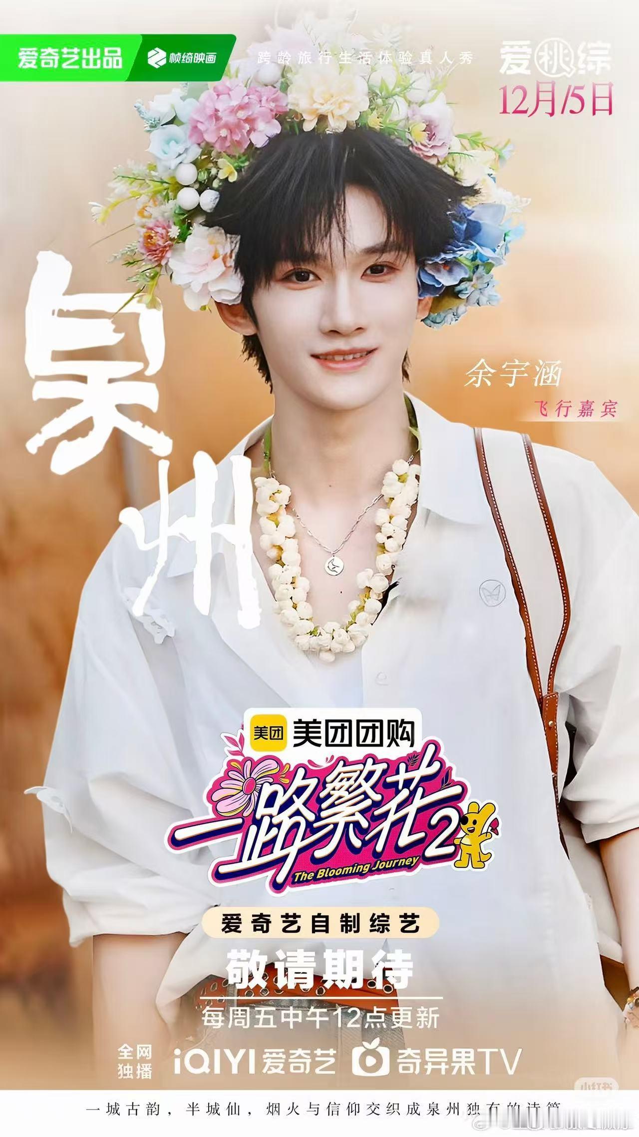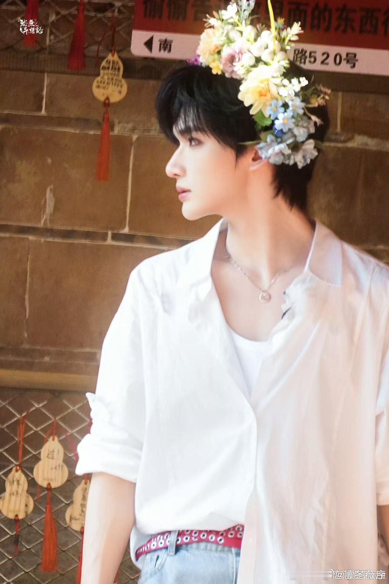 余宇涵一路繁花簪花剧照 看了余宇涵的簪花造型,感觉自己也走进了泉州的非遗世界!白衬衫与簪花相映成趣,帅气又有古风韵味,太有魅力了。