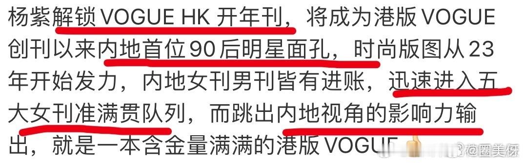 五大准满,这也太争气了,人家其他艺人都是一年一个台阶的走,杨紫是一年几个台阶的跳,属于是降维式打击了,她家粉丝确实爽。。杨紫将登上港版VOGUE封面