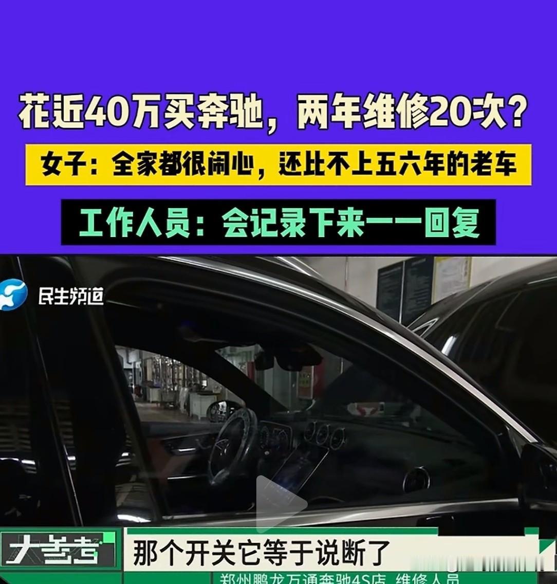 河南郑州,女子花将近40万,买了一辆奔驰新车,半年后,车子开始频繁出现各种故障,有时一周要往4s店跑两次。搞笑的是,钥匙一开,不光车门启动,后备箱会自动弹开,维修人员称,是前车门的一个开关断了。本来是冲着奔驰的品牌和质量才买的,没想到,大几十万买了个麻烦,2年多的时间,维修次数多达20多次。女子:都快崩溃了! 2023年8月,陈女士花了40万买了一辆奔驰车,不料,仅开了半年,车子出现多种问题。 至今,维修次数多达20多次,而且车子的毛病还特别搞笑,被人称买了个“病鸭子”。 陈女士的朋友有一辆奔驰,车子买了五六年,一点毛病没有。 出于对奔驰品牌的信赖和质量保障,陈女士也选择了奔驰这个大品牌。 并花了将近40万,把车买回了家。 本以为从此可以开上省心车,可做梦都没想到,省心的车都是别人家的。 而自己花了大几十万买的车,却成了烫手山芋。 她都快和4s店成了亲戚,时不时就往跑店里跑。 而让人更闹心的是,问题始终得不到彻底解决。 各种大小毛病,那是按下葫芦瓢起来,让她烦透了。 同样的问题总是这次修好了,下次又出现,有的能出现2~3次以上。 最初,是在车子开了半年的时候,陈女士突然发现,天窗打不开,雨棚滑动的时候会自动弹开。 后来又发现,车子开着开着,副驾那边的窗户时不时的会弹开,不但危险,还关不上。 更搞笑的是,自己用钥匙一开,不光车门启动,后备箱会自动弹开,财产安全问题没有保障。 而且这个问题,反复维修过好几次了,至今自己仍被这个问题所困扰。 当初,自己就是冲着奔驰这个大品牌才买的。 而和朋友的那辆买了五六年的车辆相比,自己这辆车更像是旧车,人家那才是新车。 由于还在质保期,出现问题后开到4s店,很快就修好,可过一阵,又出现同样的问题。 上次陈女士把车子开到店里来维修,一周后把车子提走。 结果,第二天刚开车上路,突然发动机又出现故障,亮起了黄灯。 后车门很明显的一直在抖动,车速也提不上去。 这种情况,在今年的3月28日首次出现,4s店称换了几个配件。 可仅8个月的时间,再次出现同样的问题,陈女士只好又把车开过来修。 和往常一样,车子多次出现同样的问题,却无法彻底解决。 无奈之下,陈女士求助了媒体,她带着记者一起来到4s店。 希望店家给出一个彻底的解决方案。 维修人员表示,他们接车的时候,故障灯已经不亮了,电脑检测后,没发现发动机有问题。 他们认为,可能是车子放了几天的缘故,也有可能是燃油品质导致的。 陈女士一听这个理由,立马反驳,称自己从没到小的加油站去加过油。 上次是花了2000多元,开回去后时间不长,再次出现同样的故障。 记者查看了陈女士的维修记录,手机上记录在案的有6次。 和陈女士所说的,维修20多次有很大的出入。 陈女士称,是4s店把之前的一些小毛病的维修记录清空了。 记者追问4s店维修人员,上周针对陈女士车辆的4个问题,他们做了哪些维修? 维修人员称,已经升级了4个车门,和车顶的天窗。 在被问及是否可以彻底解决问题时,维修人员以肯定的口气说,可以。 并称,后备箱偶尔会自动开启的毛病,是因为左前车门的一个开关断了。 陈女士觉得,那个开关平时都用不到,连这都能坏,可见确实是车子的质量问题。 记者都十分震惊,40多万的车,零件这么容易损坏,那不就是质量问题吗? 大几十万买辆车,2年维修20多次,你们怎么解释? 《消费者权益保护法》第24条:经营者提供的商品或服务不符合质量要求的,消费者可依规定、当事人约定退货,或要求经营者履行更换、修理等义务。 陈女士花近40万购买的奔驰新车,在使用过程中频繁出现故障,2年多维修次数达20多次。 同样的问题反复出现,说明车辆存在质量问题,不符合消费者对正常使用车辆的预期。 因此,陈女士有权要求4S店履行修理义务,且4S店应承担相关费用。 《家用汽车产品修理、更换、退货责任规定》:因严重安全故障累计进行了2次修理,严重安全故障仍未排除或者又出现新的严重安全故障的; 发动机、变速器累计更换2次后,或者发动机、变速器的同一主要零件因其质量问题,累计更换2次后,仍不能正常使用的,发动机、变速器与其主要零件更换次数不重复计算; 转向系统、制动系统、悬架系统、前/后桥、车身的同一主要零件因其质量问题,累计更换2次后,仍不能正常使用的,消费者可以要求退车。 陈女士的车辆出现了发动机故障灯亮、车门抖动、车速提不上等问题。 若这些问题属于严重安全故障,且经过2次修理仍未排除。 或者发动机等主要部件,因质量问题累计更换2次后,仍不能正常使用。 那么陈女士就可以根据上述规定要求4S店退车。 最终,工作人员当着记者的面保证,认真调研后,会很快给陈女士一个正式的答复。 冬日生活打卡季 关注@赵哥的法律观