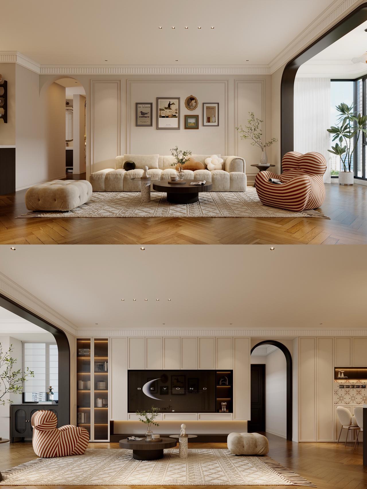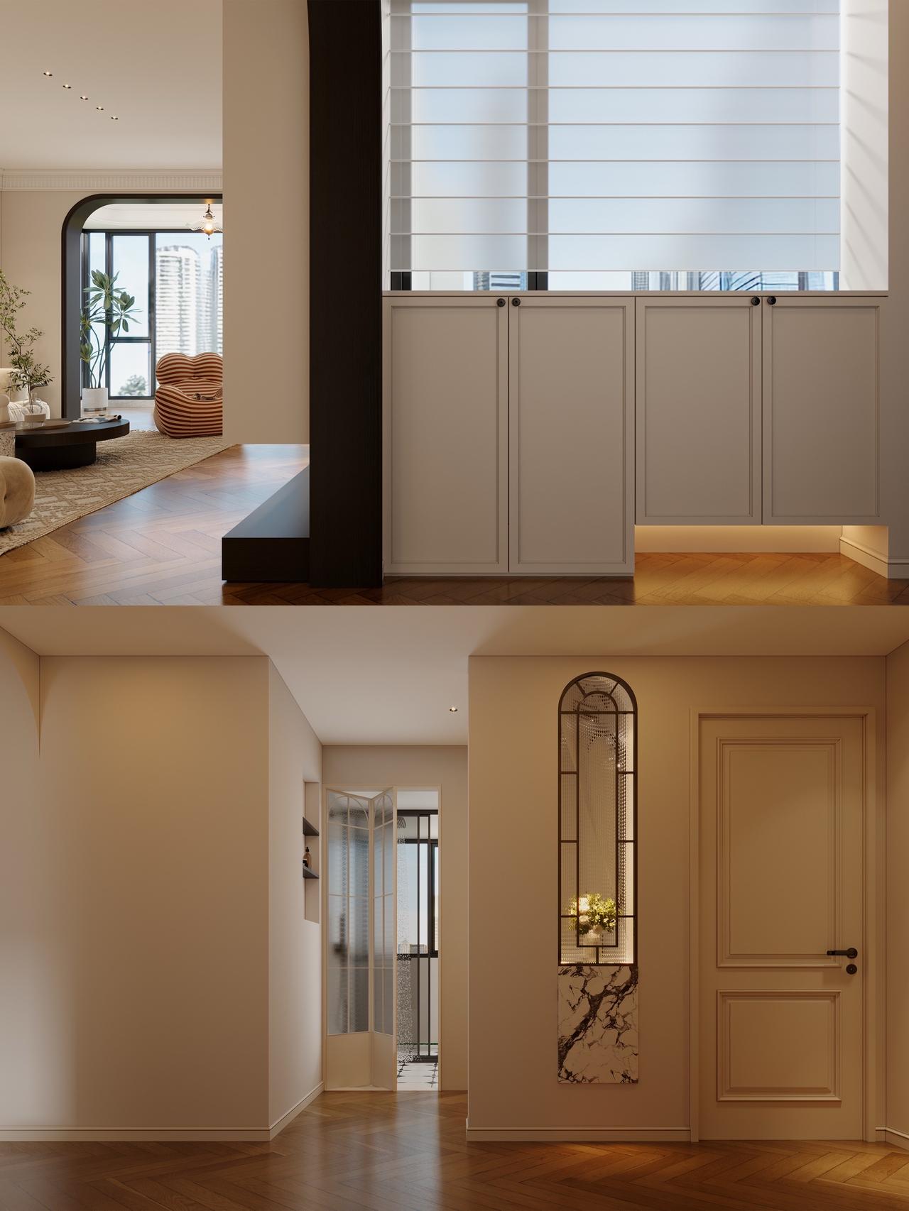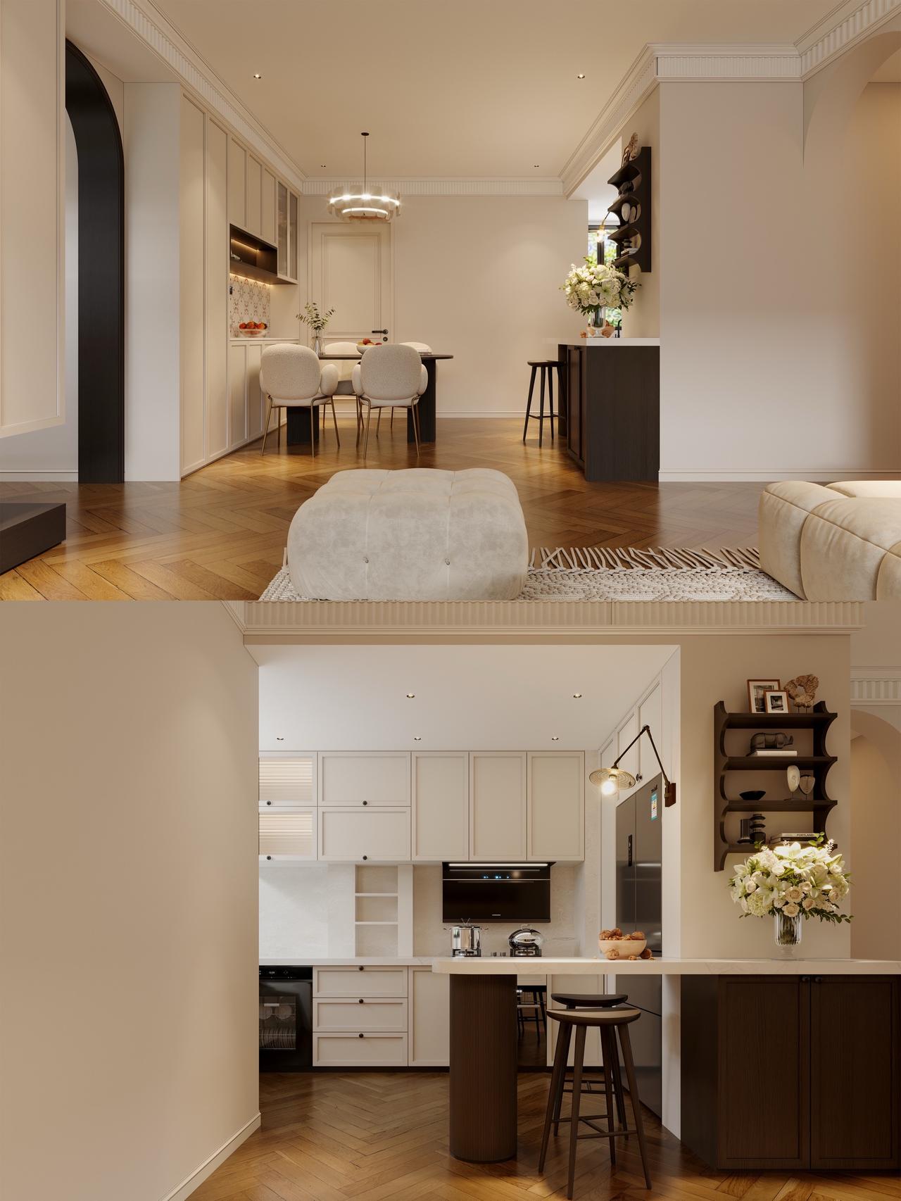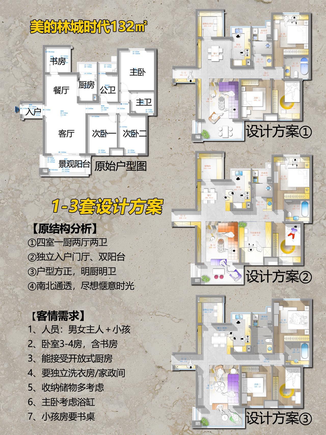 哈喽❗️朋友们,好久不见! 今天阿杰带来的是一套旧房改造案例! 贵阳美的林城时代美观苑132平方米现代美式风格,客户对原来装修有很多地方都不满意,风格老旧,设计不合理,收纳也不够用,水电点位不实用! 项目信息📋 📍楼盘:美的林城时代美观苑 🏠户型:平层 📏面积:132㎡ 🎨风格:现代美式风格 🏠【原始户型分析】 ①四室一厨两厅两卫 ②独立入户门厅、双阳台 ③户型方正,明厨明卫 ④南北通透,尽想惬意时光 📝【客情需求】 1、人员:男女主人+小孩 2、卧室3-4房,含书房 3、能接受开放式厨房 4、要独立洗衣房/家政间 5、收纳储物多考虑 6、主卧考虑浴缸 7、小孩房要书桌 🎨【设计解说】 拆除多余墙体,客餐厨形成一体化空间,弱化空间边界的同时,保留美式优雅质感;阳台纳入客厅,落地窗+百叶帘让高层视野通透度拉满。✅ 开放式餐橱区+吧台,实用且美观,厨房换为肤感白柜+黑色岛台,暗藏洗碗机/蒸烤箱,烟火气里藏精致。✅ 卧室定制整墙美式风收纳柜+内嵌书桌,兼顾储物与办公;卫生间做干湿分离,花砖+拱形镜+壁龛,用细节控住美式复古调性。✅ 🙋如您在贵阳🈶旧房改造和二手房翻新、局部改造都可以帮你设计哦,愿我为装修设计发愁的你排忧解难❗️ ✅擅长风格 意式、新中式、现代简约、奶油风、宋式美学、中古风、法式风、现代轻奢等… 📄【往期案例】 中铁阅花溪|中铁逸都|中铁阅山湖|阅山湖云著|华润悦府|中海映山湖|茅台广场|美的林城|金融城|融创九樾府|中海印龙泉|华润九悦|龙湖天曜|龙湖湖山原著|万科鸣翠|万科麓山|铁建城|龙湖舜山府|远大美域|观山小区|建发和玺|保利公园 。。。。。。 贵阳装修 美的林城时代 旧房改造 二手房装修
