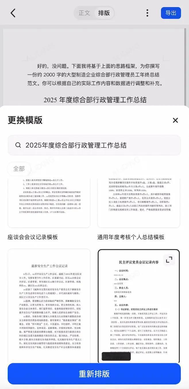 工作多不怕,怕领导反复!! 浙江一网友吐槽,每天上班总是需要在Word、Excel、PPT等众多办公软件中频繁切换,一天下来光是点软件手指都点酸了,很希望在一个应用里解决所有问题。 此话真的道出了很多打工人心声,现在很多人最崩溃的就是,每天的工作从生成到编辑、排版、导出最后再到转换格式,需要在不同的APP之间来回折腾。 这还不算,这个领导喜欢这个格式,另一个领导喜欢那种格式,这才是最要命的事。 这就是现代职场的真实写照——“工作多不怕,怕领导反复”。每天在不同软件间奔波,像是在打仗:Word里写完了,Excel还得补充数据,PPT又要重新排版,最后还得担心格式不统一、风格不一致。忙得你晕头转向,手指都快酸掉了,可问题还远没有结束。 更让人抓狂的是,领导的“喜好”变幻莫测。今天喜欢简洁明了的PPT,明天又要花哨一点的风格;这个格式能用,那个格式就要换。这种“无形的压力”比工作本身还令人焦虑。你拼命适应,拼命调整,却总觉得像在无休止的“格式战”中挣扎。 其实,背后折射出的是一个普遍的职场痛点:效率低下、碎片化的工作流程,和不断变化的“无形规则”。我们被各种软件、格式绑架,甚至被领导的喜好牵着走,渐渐忘记了“工作本应是为了创造价值,而不是为了应付繁琐的操作”。 但你知道吗?这个时代也在悄然变化。越来越多的公司开始意识到“流程优化”的重要性,开始引入一体化办公平台,试图打破软件和格式的壁垒,让“切换”变得更顺畅。未来,也许我们不用再在多个应用之间“折腾”,而是拥有一个“万能”工具,真正实现“少点操作,多点创造”。 所以,打工人们,不要只被“软件切换”困住,也别让“格式喜好”成为阻碍。我们要用自己的智慧和声音,推动变革,让工作变得更简单、更高效。毕竟,工作是为了生活,而不是生活在“繁琐”里。下一次,当你觉得“太扎心”时,不妨想想:我们共同期待的那个“全能办公时代”,会不会就在不远的将来?职场人通病 职场怪癖