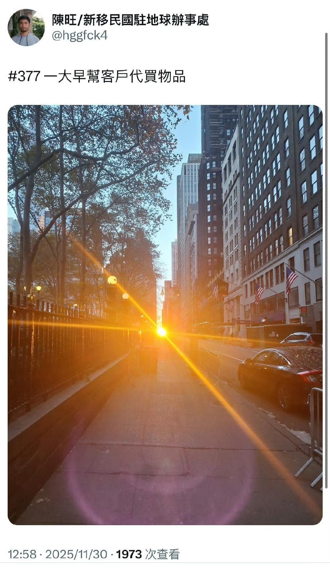现在的润圈世界,是静悄悄啊。扛不住的,都回来了。扛得住的,还在死扛。 陈旺出车祸腿撞瘸了,但他只休了三天,又披挂上阵为客户跑腿挣钱去了。手停口停,趁着还能动,赶紧下床干活揾冬食。 看他拍的照片可以看出:迎着地平线上初升的太阳,戴着有美国旗的帽子、微跛的腿、披星戴月,尽管身心也遍体鳞伤,也要坚定的在大美丽开辟出一片新天地。