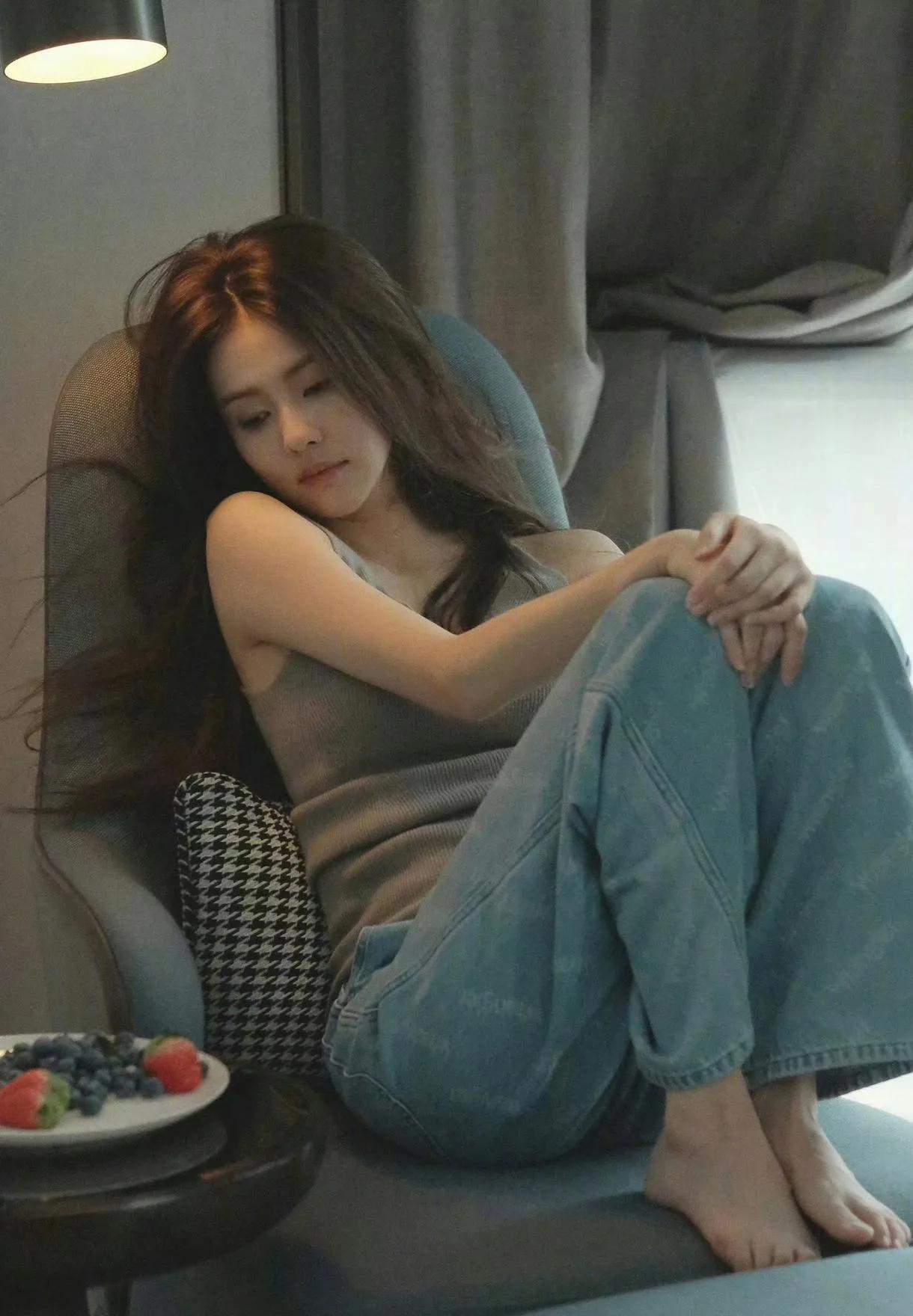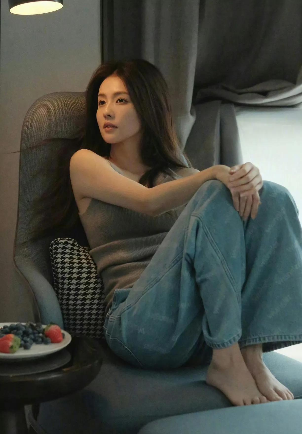 白鹿这私服也太会了!背心+牛仔甜到心尖 白鹿的居家私服杀疯了✨ 浅灰背心搭宽松牛仔,光脚丫随性又软萌,少女感直接溢出屏幕,这松弛感谁看了不心动!
