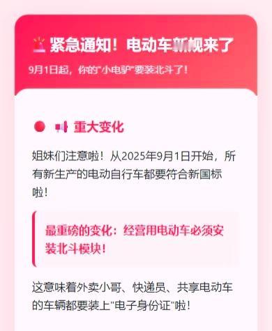 紧急提醒:旧车骑行新规陷阱,车主集体焦虑中 今天是2025年12月4号,新国标电动自行车已经生效四天,从12月1日开始,所有销售的电动车都得符合GB 17761—2024这个新标准,旧款车不能继续卖,连CCC认证证书都被国家认监委注销掉,商家要是还在卖老款车,市场监管人员可以直接按照《产品质量法》进行处罚,消费者看到“解限车”或者没有认证的电池充电器,拨打12315举报就行,现在就看谁还敢顶风作案。 新国标不只是改动速度和重量,它重新搭建了整辆车的安全体系,塑料件占比不能超过整车5.5%,电池盒和坐垫必须使用阻燃材料,挡泥板换成铝镁合金材质,能够防火,过去电动车起火致人死亡,往往是因为烟雾毒性太大,现在从材料上堵住这个漏洞,车身上还刻有耐高温的编码,就算车辆烧毁也能查出生产厂家,确保责任可追溯,最严格的是“一车一池一充一码”,电池、充电器和车辆互相绑定,只要改动其中一个,系统就会停止工作,想要私自解除限速,根本没有可能。 刹车系统做了改进,下雨天路面湿滑时,新国标电动车能够及时刹住车,制动距离比老款缩短将近一半,外卖员和快递员使用的车辆必须安装北斗定位设备,普通用户暂时不需要安装,但车上预留了接口,以后想要增加防盗追踪功能的话,直接插上就能使用,这其实是在为城市管理和车辆管理打基础,虽然没有明确说明,我认为这是件好事,但也有人可能觉得受到监控,心里感到不太舒服。 老车还能继续骑,只要在11月30日前上了牌照就可以,12月1号之后再想上牌就行不通,厂家提到旧车的配件还可以维修五年,但市场上总有人销售那种没有认证的兼容电池,价格便宜却存在危险,一些商家用清仓作为理由来卖旧车,普通顾客很难分辨真假,大家买东西时要看清楚车身有没有CCC标志,合格证上的型号是不是对得上,再扫码查一下认证状态显示为有效,也不要相信那些所谓的通用充电器,它们根本不符合规定,用了可能会引发问题。 我现在担心那些还在用老款电动车的人,新规定没说必须淘汰旧车,但新系统设计得越来越智能,维修只能去官方授权点,如果用了非原厂配件,系统就会识别为异常情况,车子可能自动减速、断电甚至锁死,这相当于变相催促大家换新车,虽然政策上没写,但技术上已经在排斥老款车了,我有个朋友反映他的旧车最近充电时总是提示“不匹配”,直到换了原厂电池才恢复正常,这种情况算是一种隐性的强制升级手段,却没有人出面解释清楚。 购买新车时需要多加留意,不要只关注价格和外观,要把重点放在检查认证上,如果扫码查不到信息、合格证对不上号或者没有CCC标志,这些车都不要考虑,充电器也要和车辆匹配好,单独购买的所谓“万能充”看起来方便,实际上不符合规定,有人为了省钱买这种充电器,结果车子充不了电,还差点造成短路问题,安全方面的事情真的不能图省事。 新国标才实行四天,市场还在适应过程里,有些店铺偷偷卖旧款车,配件商也在找空子钻,消费者自己要留心点,别让人给骗了,官方查得紧,但没法盯住每个地方,我们得多问几句多扫扫码,别让车子变成定时炸弹,说实话我挺支持这种系统调整,安全最重要,就是希望老车主的车还能正常修理,别弄得能骑却修不了。