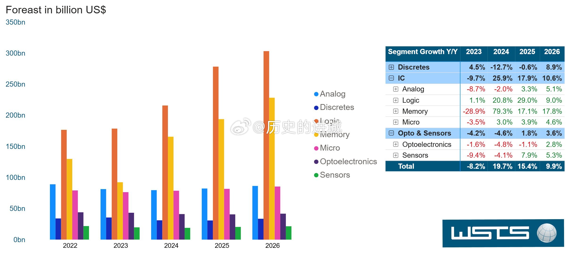 世界半导体贸易统计组织WSTS在秋季展望中,将2025年全球半导体市场规模的预期上调约450亿美元至7720亿美元,同比增幅扩大至22%。预计2026年的半导体市场规模将同比增长25%,逼近1万亿美元大关。预计关键增长驱动力逻辑电路和存储器分别增长29%和17%(均上调5个百分点)。