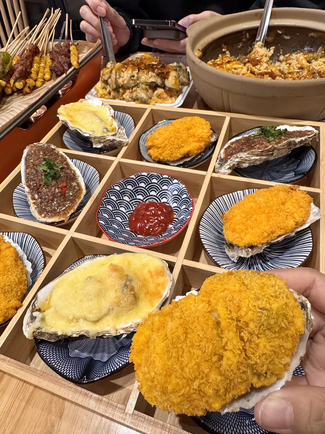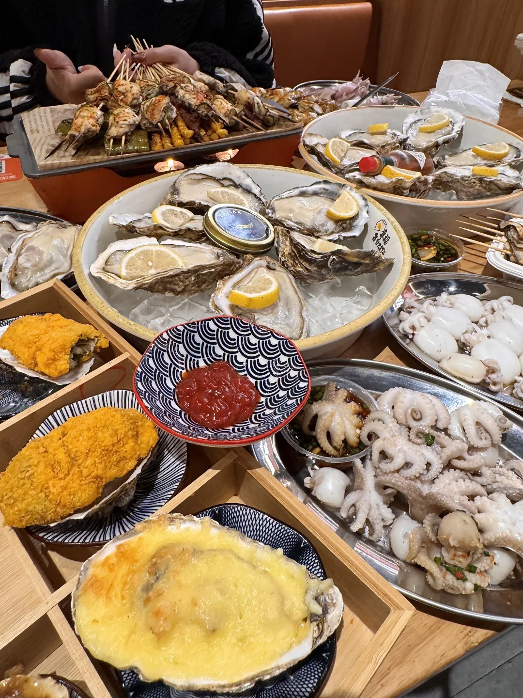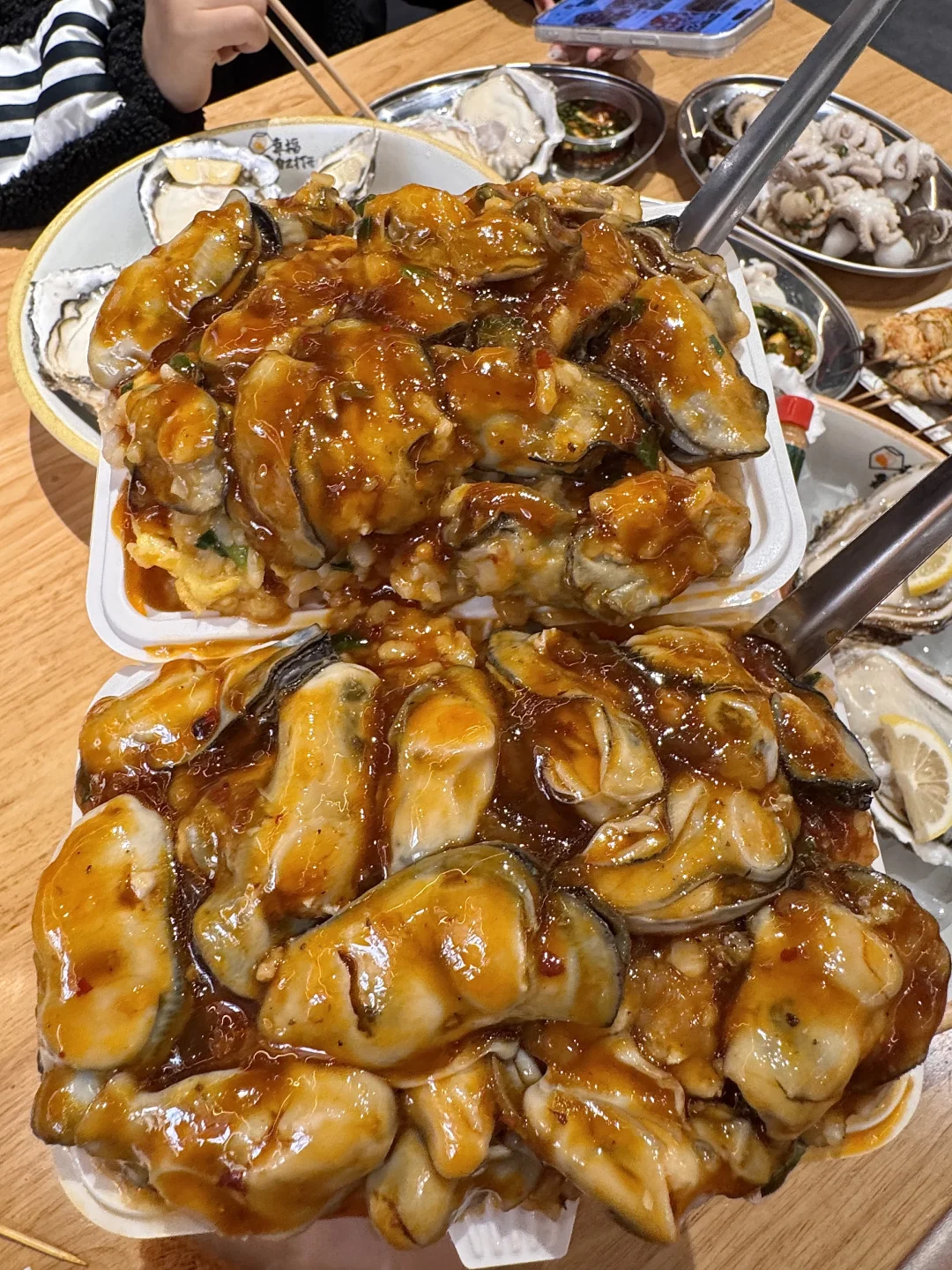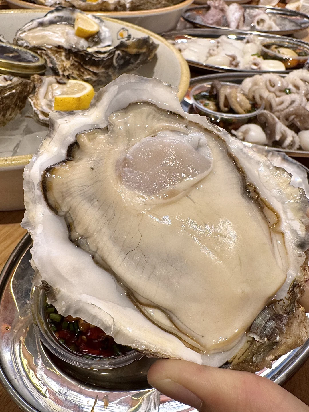 柠檬叶烤生蚝!!!列入亖前必吃清单了! 生蚝肥美大只,一口巨多汁!!吃得出本身的鲜味又不失炭火气!柠檬叶好清爽啊😭 还有蚝仔捞饭、捞汁章鱼、墨鱼仔…全都新鲜好吃!环境一般 私心舍不得它太🔥…(叫:蚝当家