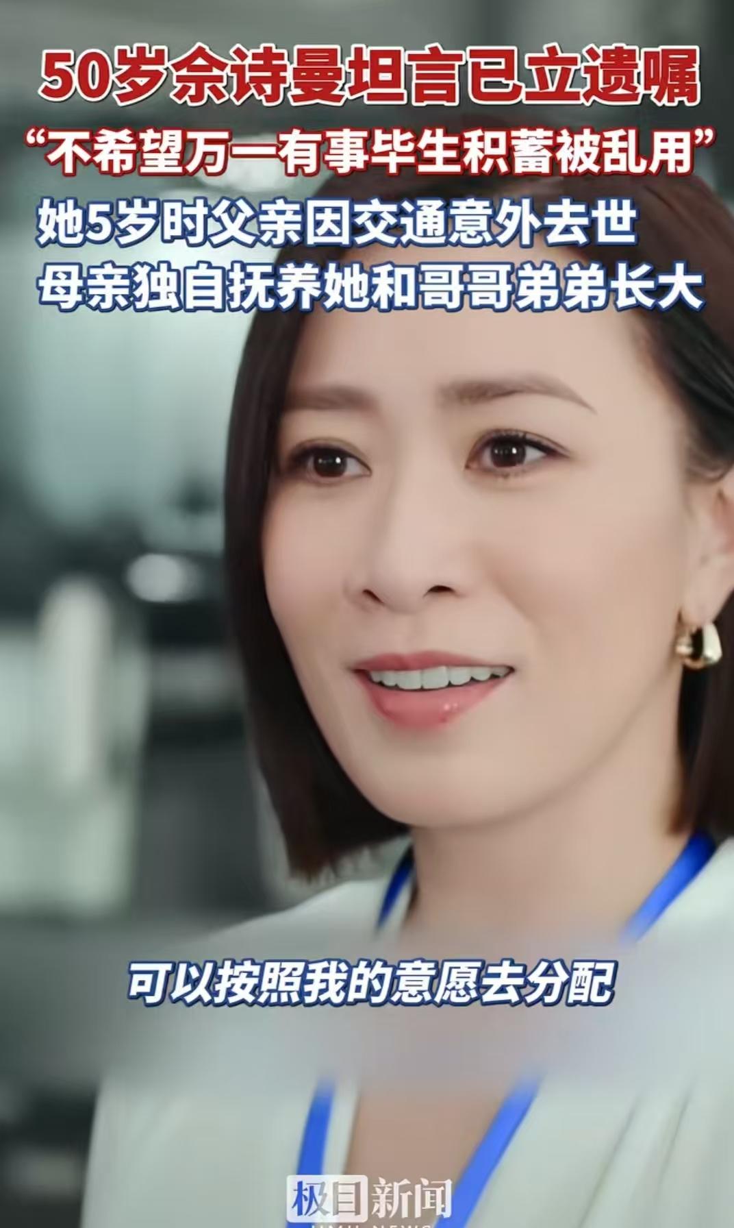 50岁佘诗曼立遗嘱,听着是不是有些遗憾和可惜呢?没结婚,没孩子,积蓄应该是赚了不少。 哥哥弟弟,侄子侄女来分,家庭关系貌似很好。但她立遗嘱的目的是不希望她有事的时候,毕生积蓄被乱用,说到底,还是心疼钱吧。 也有可能,立遗嘱能避免兄弟之间因此产生纠纷。毕竟,这样的事情太常见了。 如果有孩子,是不是就没有这个烦恼了?也不用心疼钱被乱用了?说到底,兄弟姐妹跟自己的孩子相比较,从内心上就有本质的区别吧。