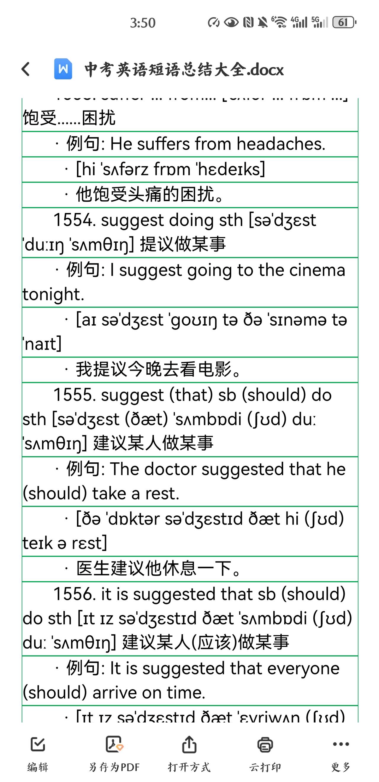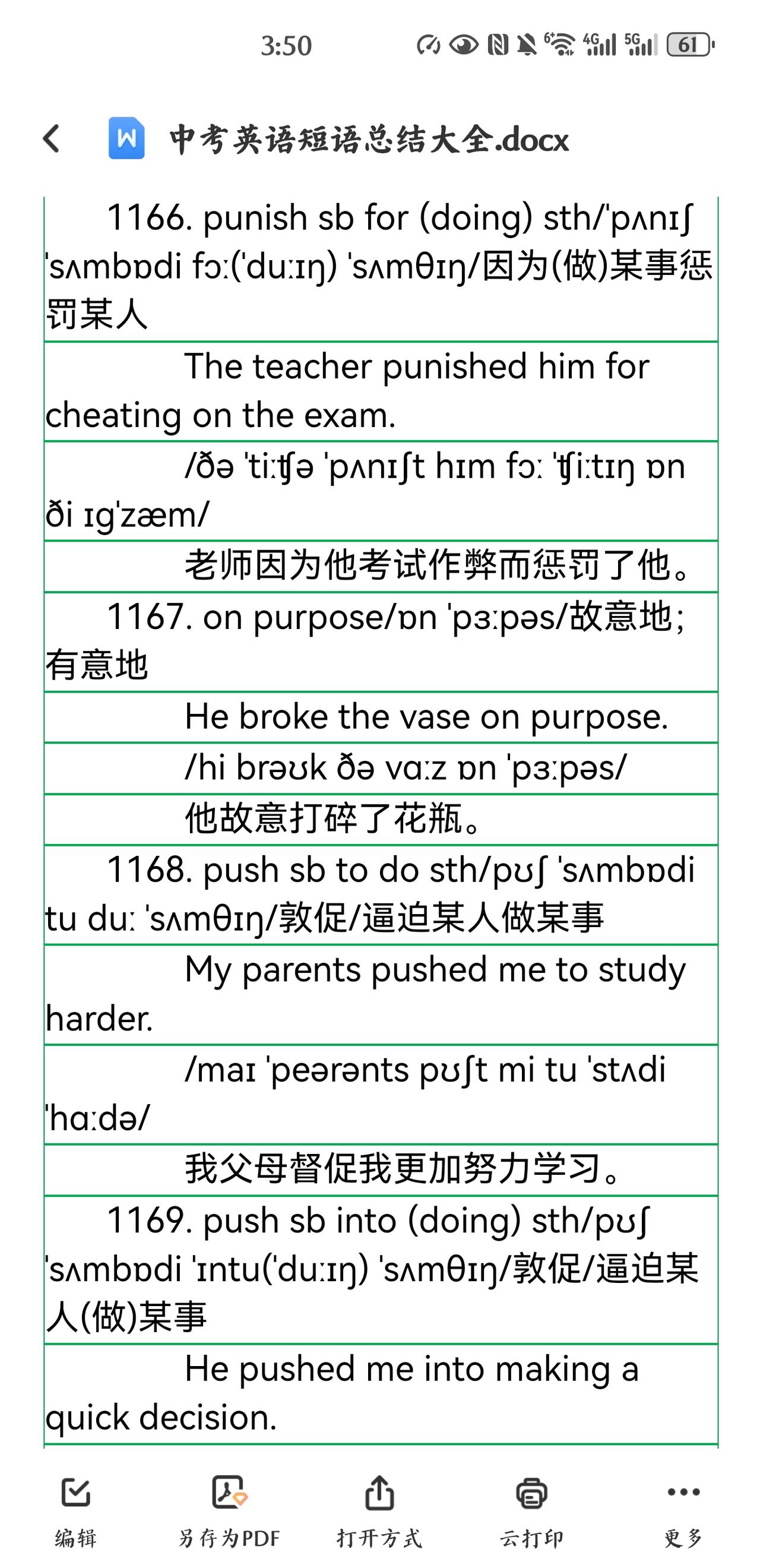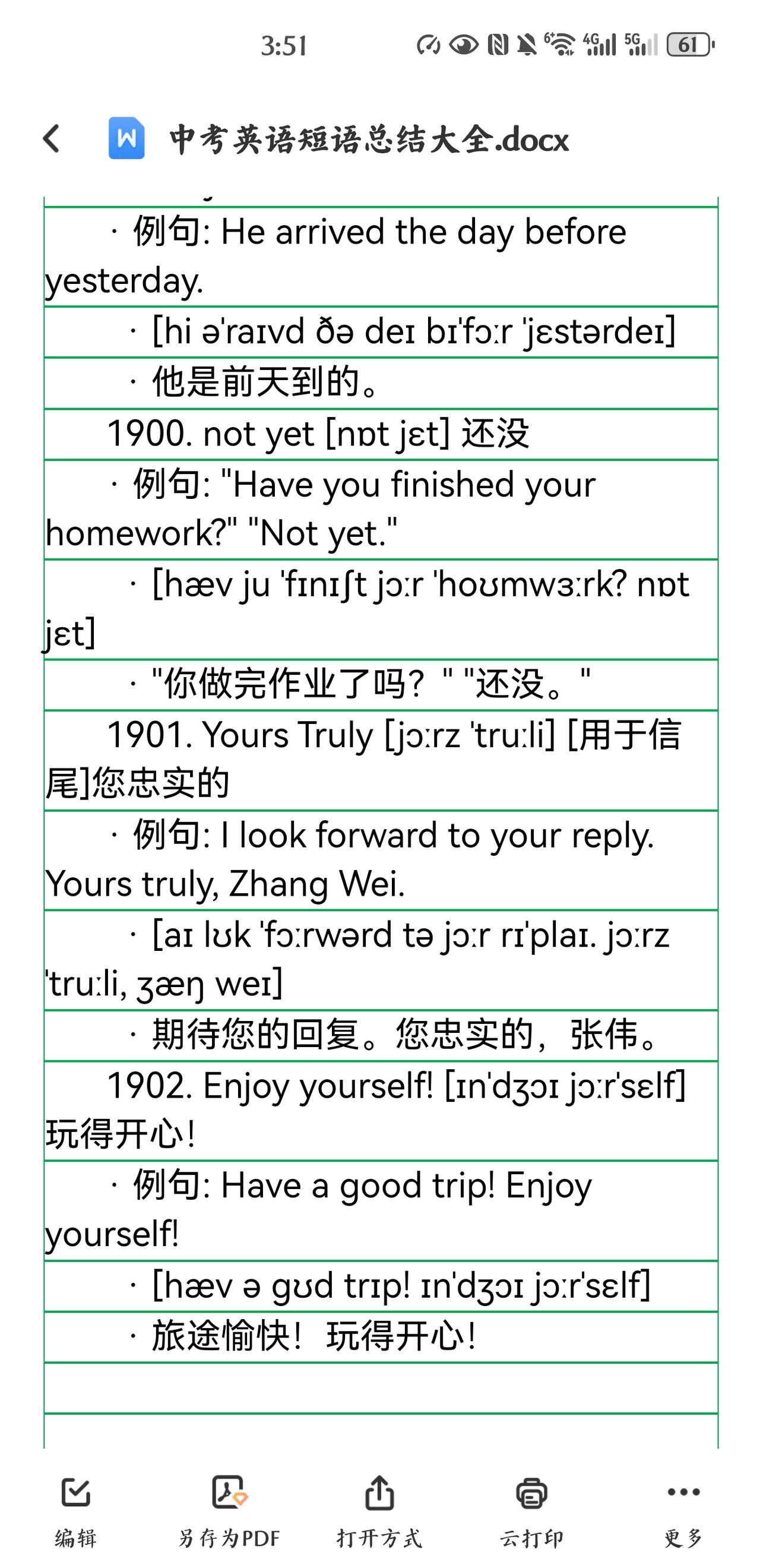 中考英语必背的1902个固定短语总结。学好英语最简单高效的方法不是背单词而是背句子,背短文。句子、短文背的多了,语法、听力、选择、完型、阅读和作文都更加简单。