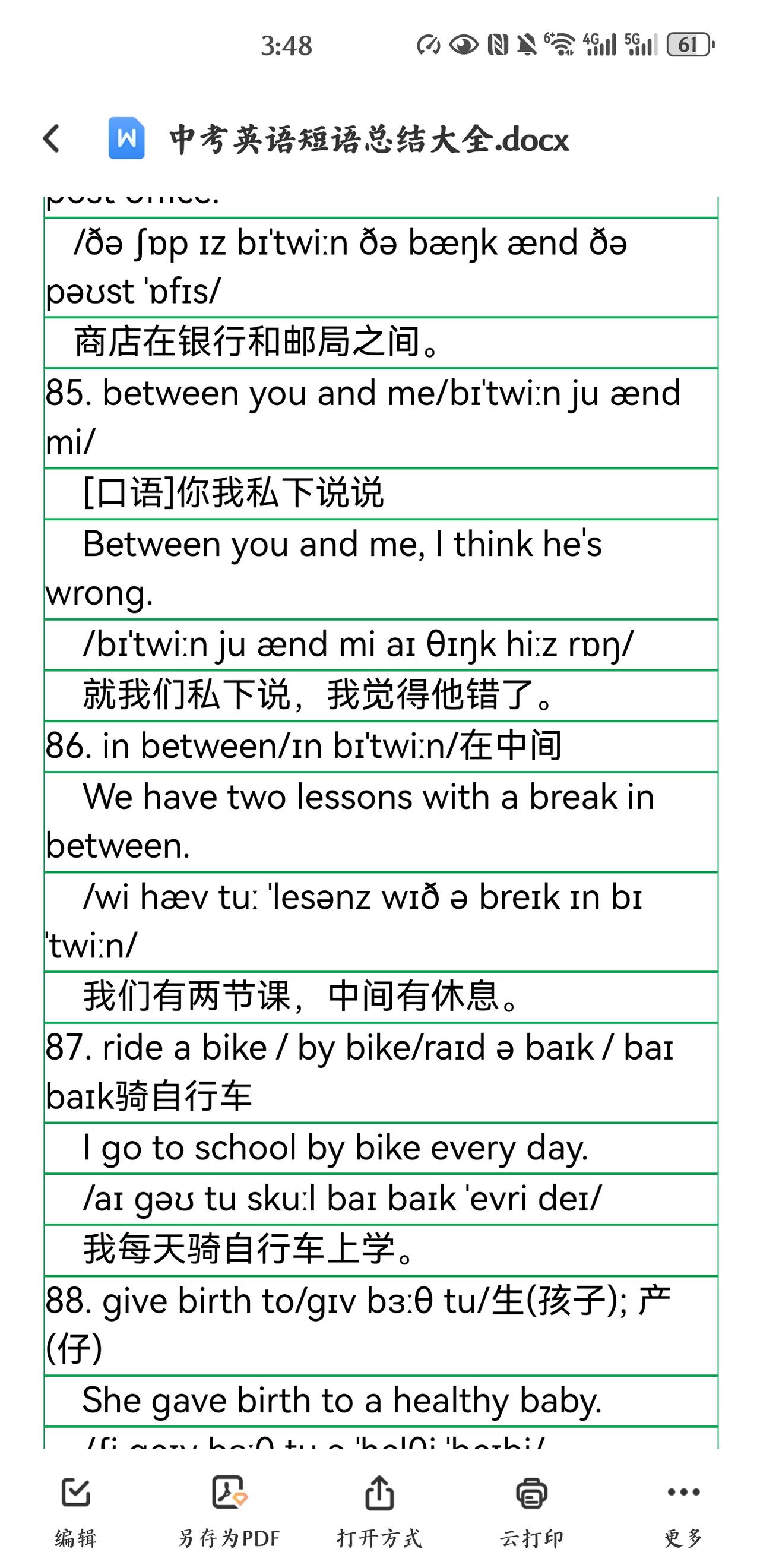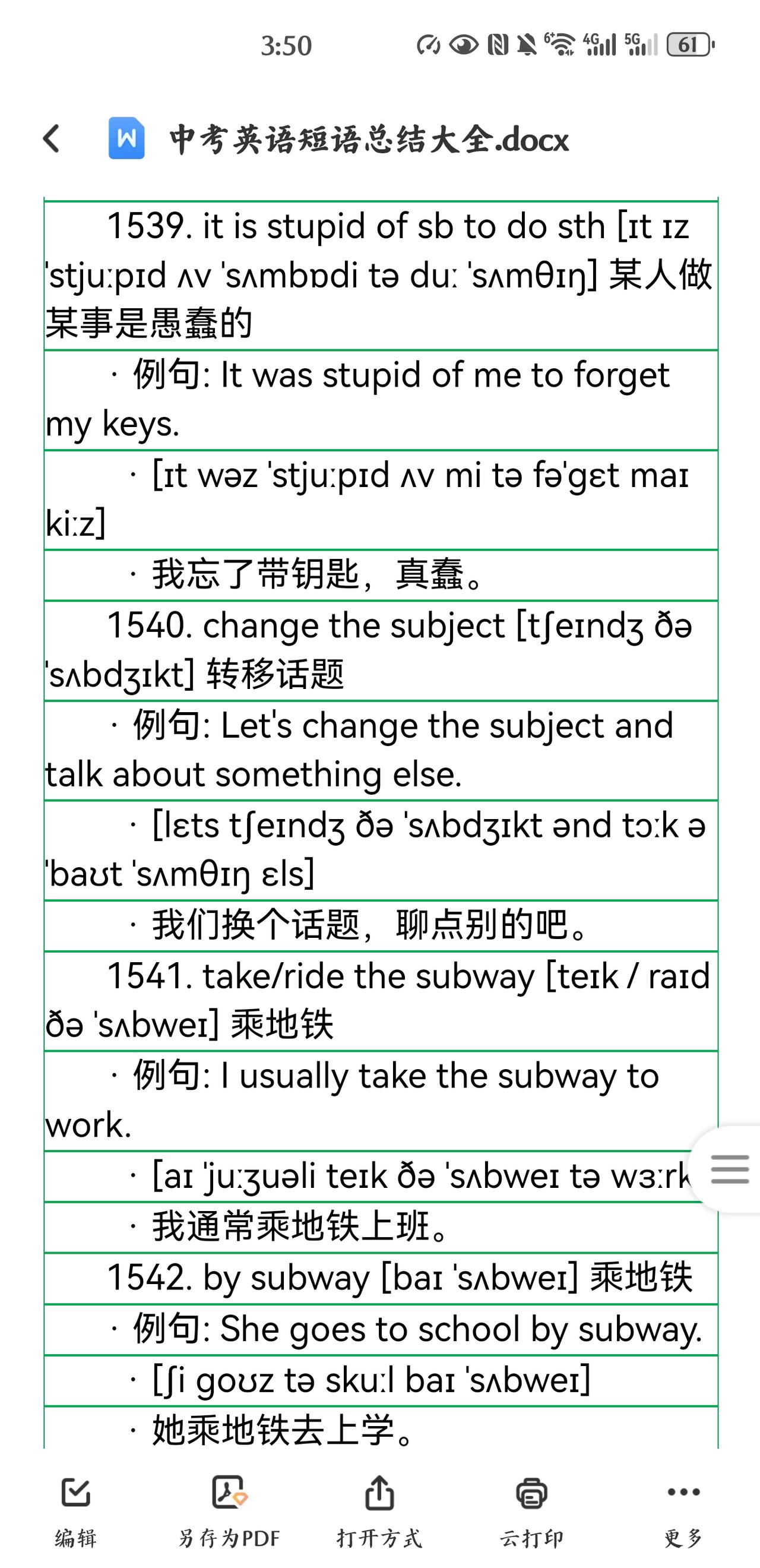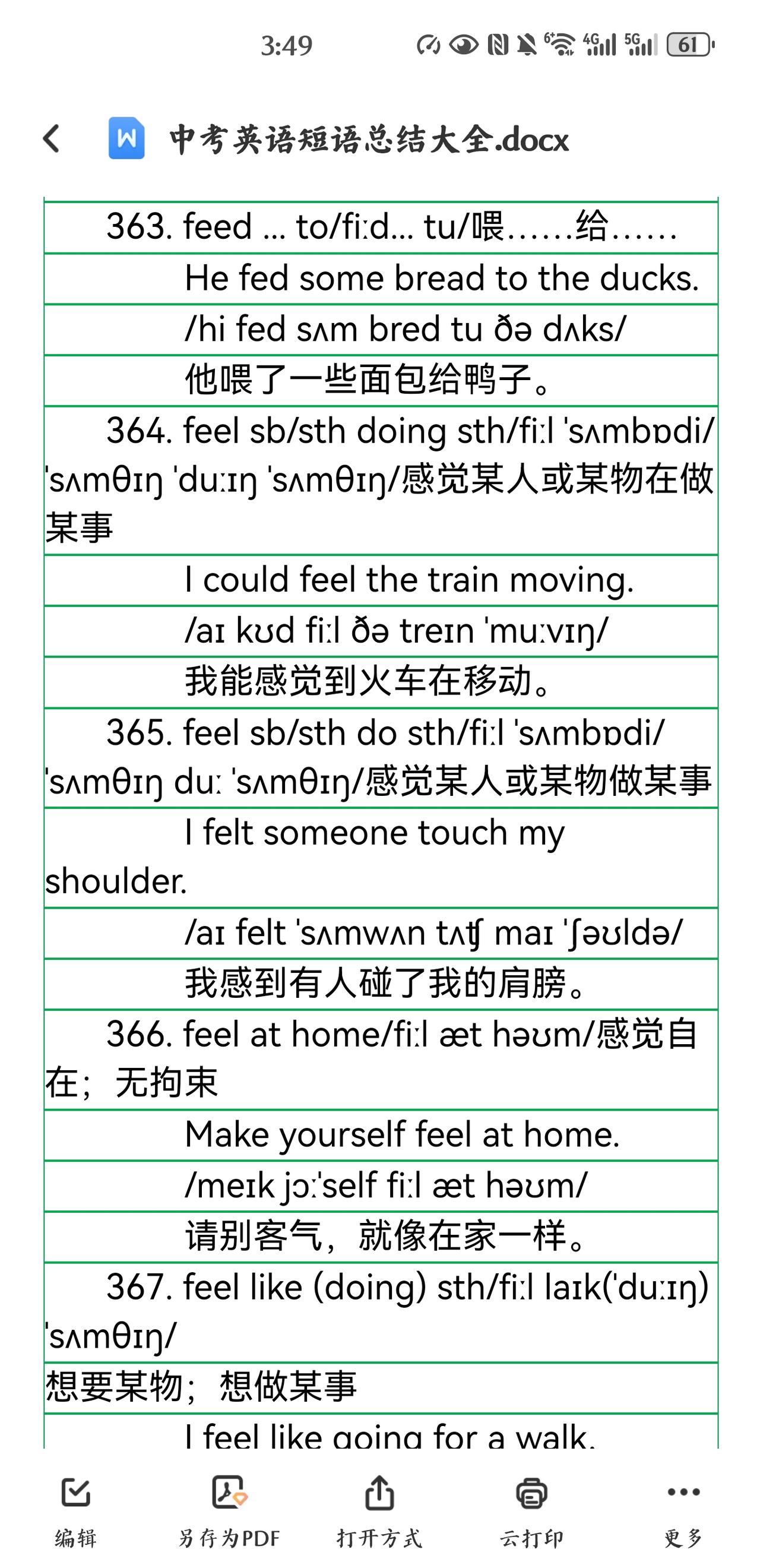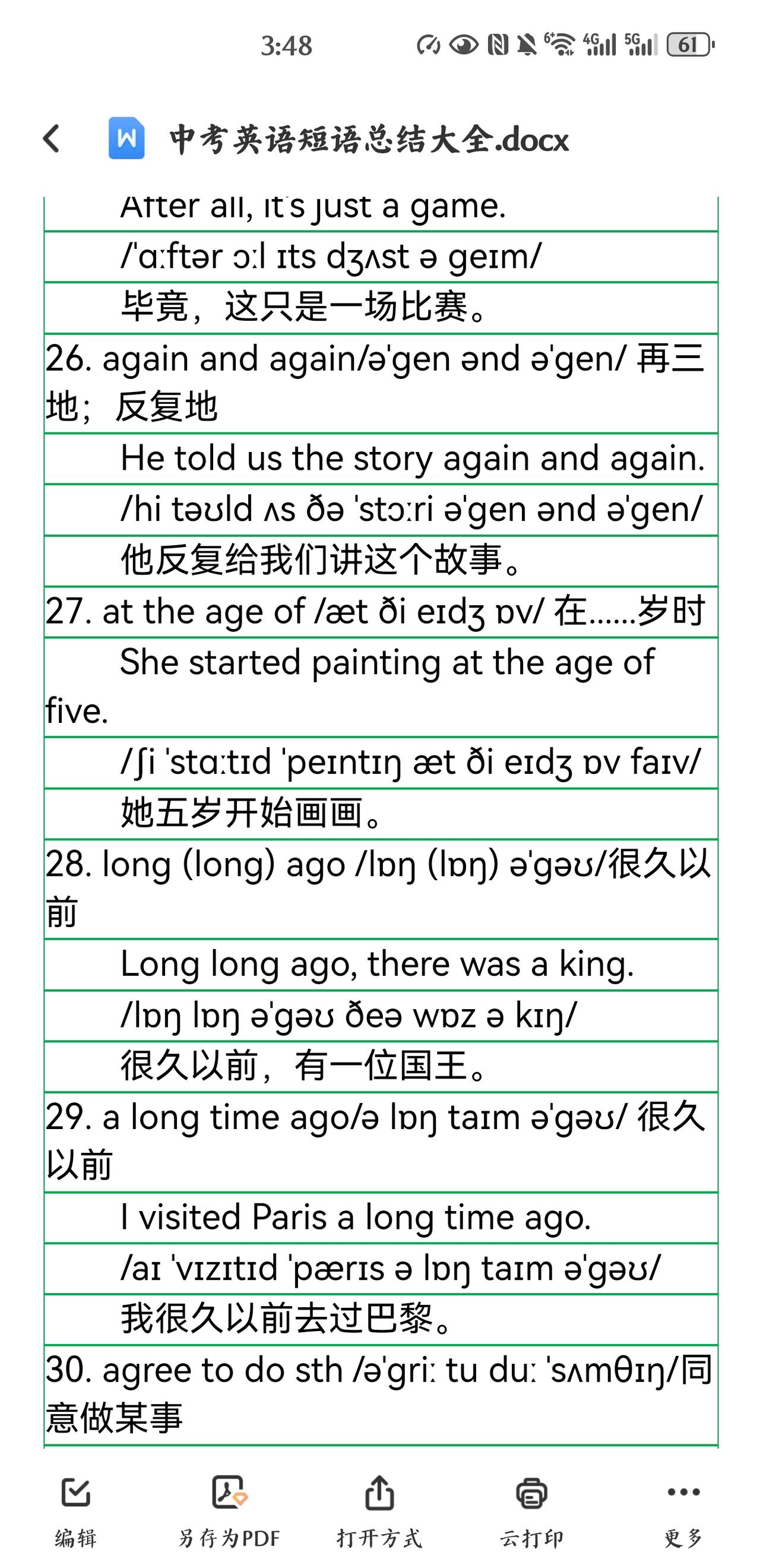 中考英语必背的1902个固定短语总结。学好英语最简单高效的方法不是背单词而是背句子,背短文。句子、短文背的多了,语法、听力、选择、完型、阅读和作文都更加简单。
