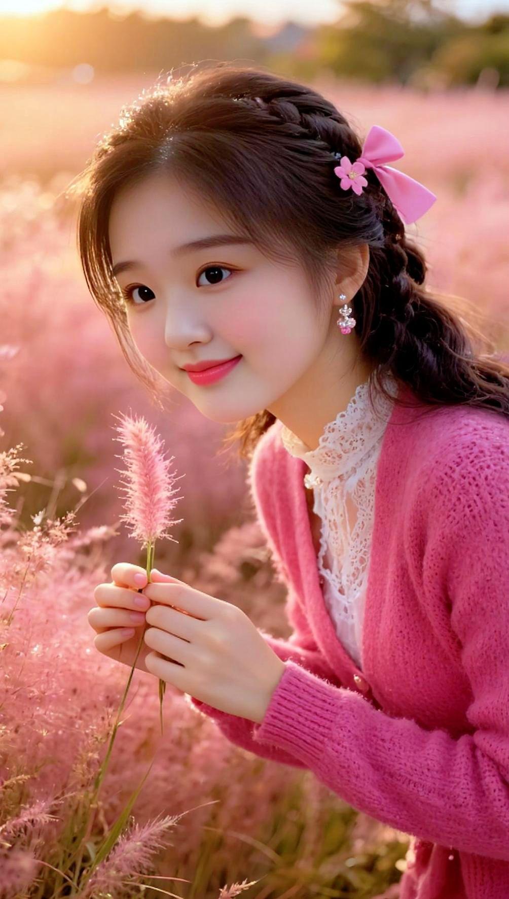 微笑女孩 粉光照 自拍姿势 自拍