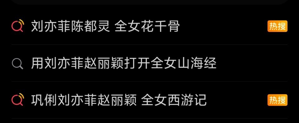 用刘亦菲赵丽颖打开全女山海经又来了,全女西游记,全女花千骨,全女山海经。我不信这是巧合。打女拳牌的,都要严查是否和NGO有合作。