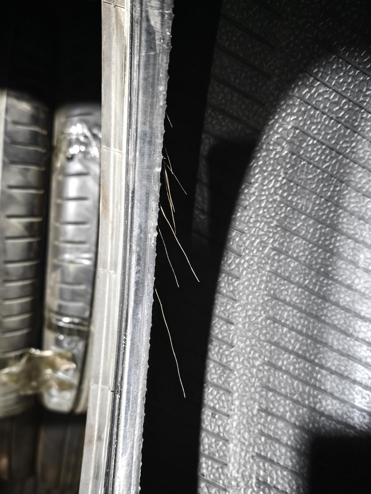 由于车上使用的倍耐力防爆胎,亏气看不出来,也怪自己粗心大意,很长时间没查过胎压,其实很早就被扎了钉子。 在亏气状态下开了很长时间,来轮胎店补胎,拆开后看到轮胎内侧的钢线已经露出来很多了,里面也被碾的断断续续了。用了4年的轮胎要换了。【来自懂车帝车友圈】