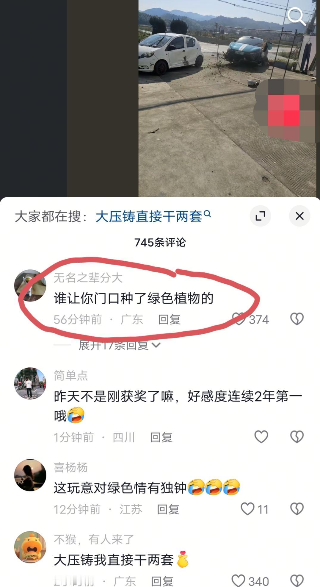 浙江,网友发视频吐槽:人在家门口坐,祸从天上来,要不是当时没有打盹,就差点给自己开席了…… 评论区网友的评论更是不禁让人捧腹: “谁让你门口种了绿色植物呢”。 “我认真的看了。发觉真的就偏偏奔着那个颜色的地方去的”。 “防不胜防啊,这要是过年一家人摆个桌子在外面打牌晒太阳。无法想象啊”。 该说不说,这个品牌的这两款电车真的是特别喜欢往路边带绿色的地方钻,怪不得被人戏称为“绿化带战神”。可这到底是车的原因多一点,还是司机的原因更多一点呢?