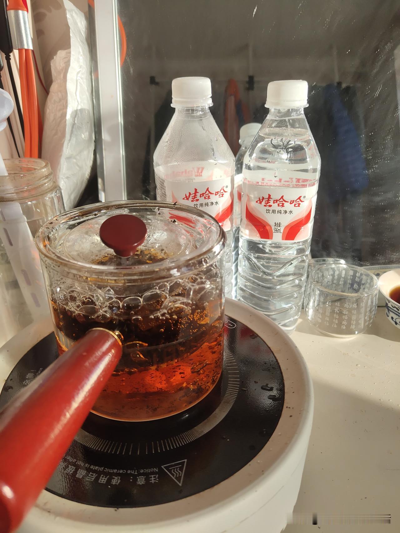 新添的煮茶炉摆在窗台,玻璃壶里的水正“咕嘟”冒泡,我捏着一小块朋友送的97年的普