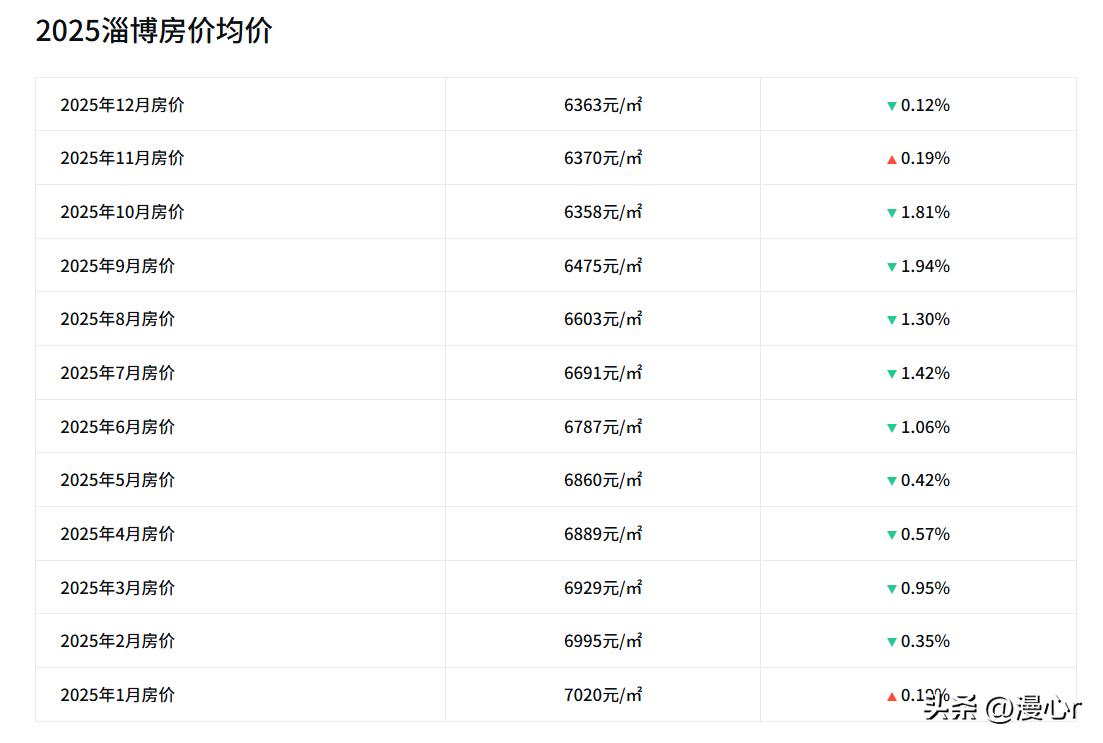 2015年11月,淄博二手房均价5911元; 2016年11月,淄博二手房均价5847元; 2017年11月,淄博二手房均价7055元; 2018年11月,淄博二手房均价8512元; 2019年11月,淄博二手房均价8778元; 2020年11月,淄博二手房均价8732元; 2021年11月,淄博二手房均价8361元; 2022年11月,淄博二手房均价8290元; 2023年11月,淄博二手房均价8136元; 2024年11月,淄博二手房均价7017元; 2025年11月,淄博二手房均价6370元。 淄博过去十年的房价趋势,可以明显的分为四个阶段: 2015-2016年,淄博的房价基本没有什么变化,和2013年、2014年房价差不多。 然而,伴随着全国棚户区改造、城镇化快速推进,淄博的房价也开始水涨船高,到了2019年房价涨了差不多3000多。 2020-2021年,价格基本保持稳定,从2022年开始,房价开始下跌,截至2025年11月,房价回归至2016-2017年水平。 其实不管是房价涨还是跌,这都是市场决定的,我们不光要知其然,还要知其所以然,漫心r认为有三个原因: 1、大环境变了,房地产市场的金融属性在慢慢褪去,留下的是房住不炒的定位回归; 2、淄博房价的下跌,是在挤泡沫的过程,而不是很多人担心的经济下行所致,因为淄博的经济是很扎实的,据统计,淄博的高新技术企业就已经有1800多家,还入选了国家创新强市; 3、购房者的观念已经变化,人们关注的重点已经不是涨不涨的问题,而是房子住的爽不爽。特别是95后、00后们。 当我们看清淄博房价的本质后,我们对待房子和生活的态度也发生了改变,房子的属性是居住,它不可能再制造暴富的神话,但它会让我们的生活更加的舒心和踏实。