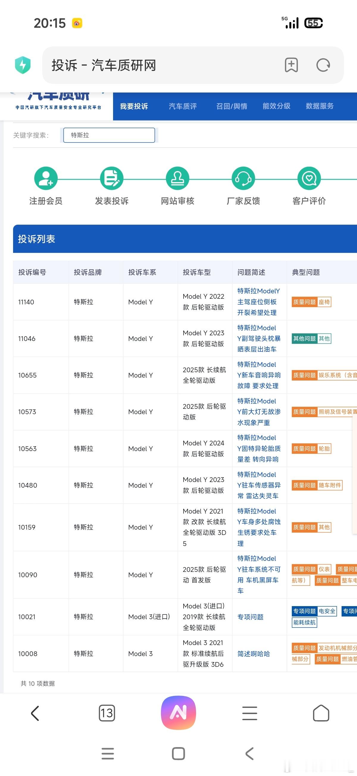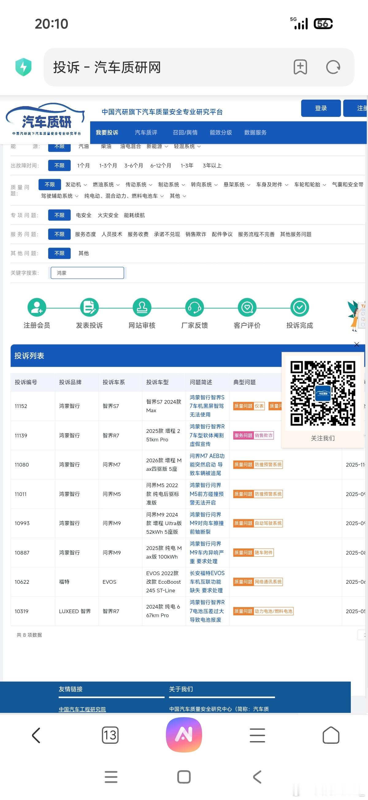 刚才在〖汽车质研网〗投诉列表中,搜了一下小米、鸿蒙智行、理想、智己、小鹏、特斯拉、阿维塔、比亚迪、蔚来,这些热门品牌,小米竟然是0投诉。小米汽车鸿蒙智行智己汽车汽车