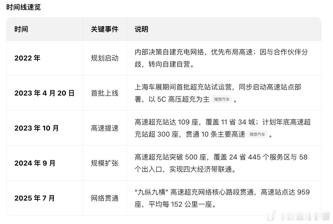 看到的图,理想超过蔚来成为高速上品牌自营补能站最多的车企了,小智查了下,从 22 年规划启动,到23 年 4 月 20 日首批落地并启动大规模建设,再到 25 年年中形成 “九纵九横” 核心网络,理想这波也挺基建狂魔。之前说是25年底要到 4000 座,25年还有二十来天,到时候看看一共会有多少座啊理想汽车