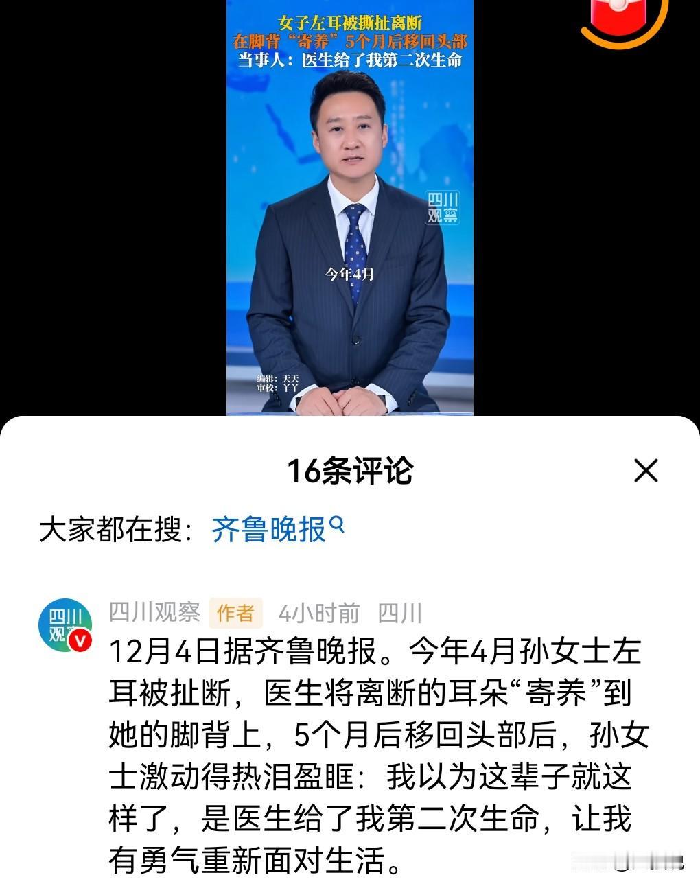 如果不是在网上亲眼所见,我是万万不敢相信,现在的医术已经发展到这种地步了,实在是太神奇了。 女子左耳断离,没想到在脚背“寄养”了几个月,又手术移回到头部。 这真的是太给力了。 女子也是非常的激动,感谢医生给了她第2次生命,让她有勇气面对生活。