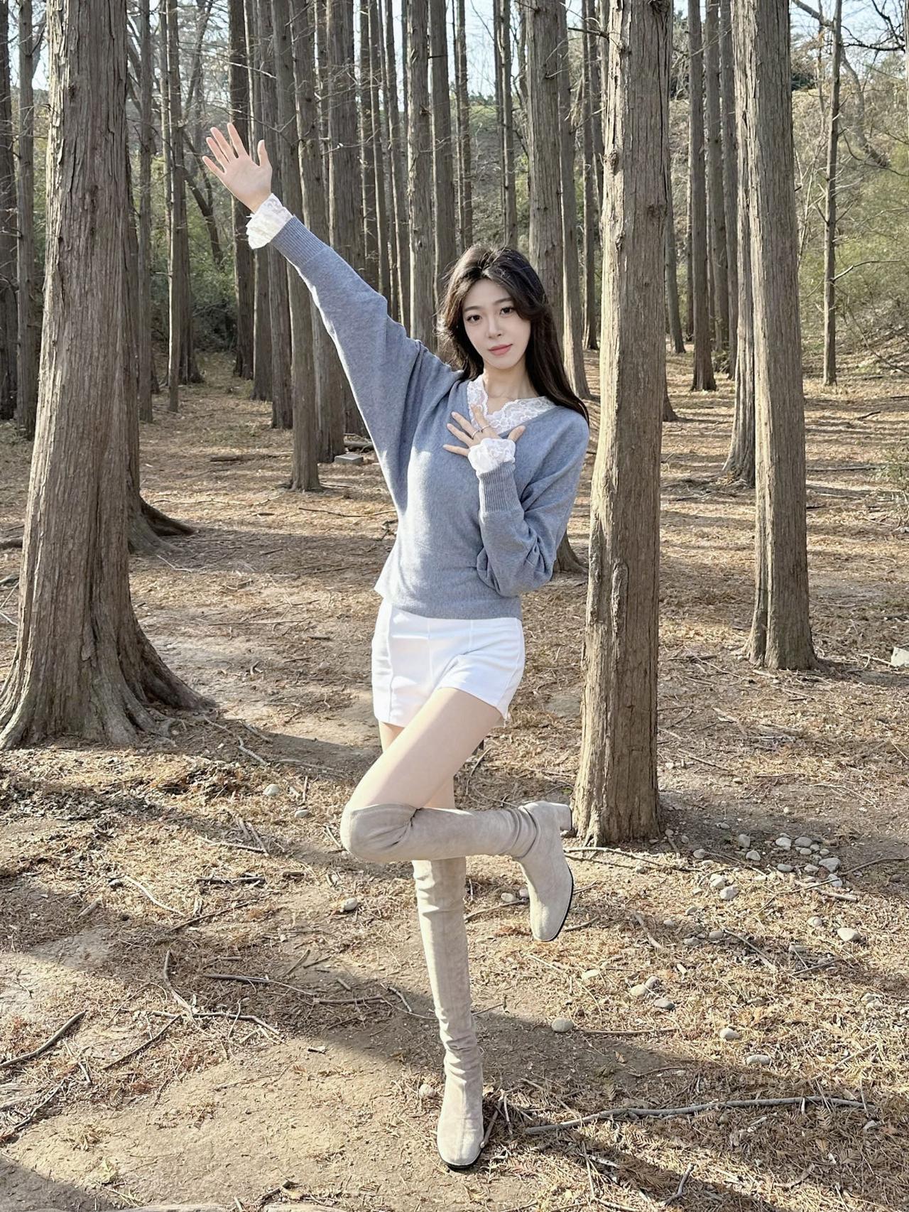 浅灰色毛衣搭配白色短裙+长靴子棕色短裙穿搭 灰色修身裙穿搭 灰色裙子穿搭 灰色时尚套装裙 灰色花苞裙穿搭 灰色长裙子穿搭 灰色过膝袜穿搭