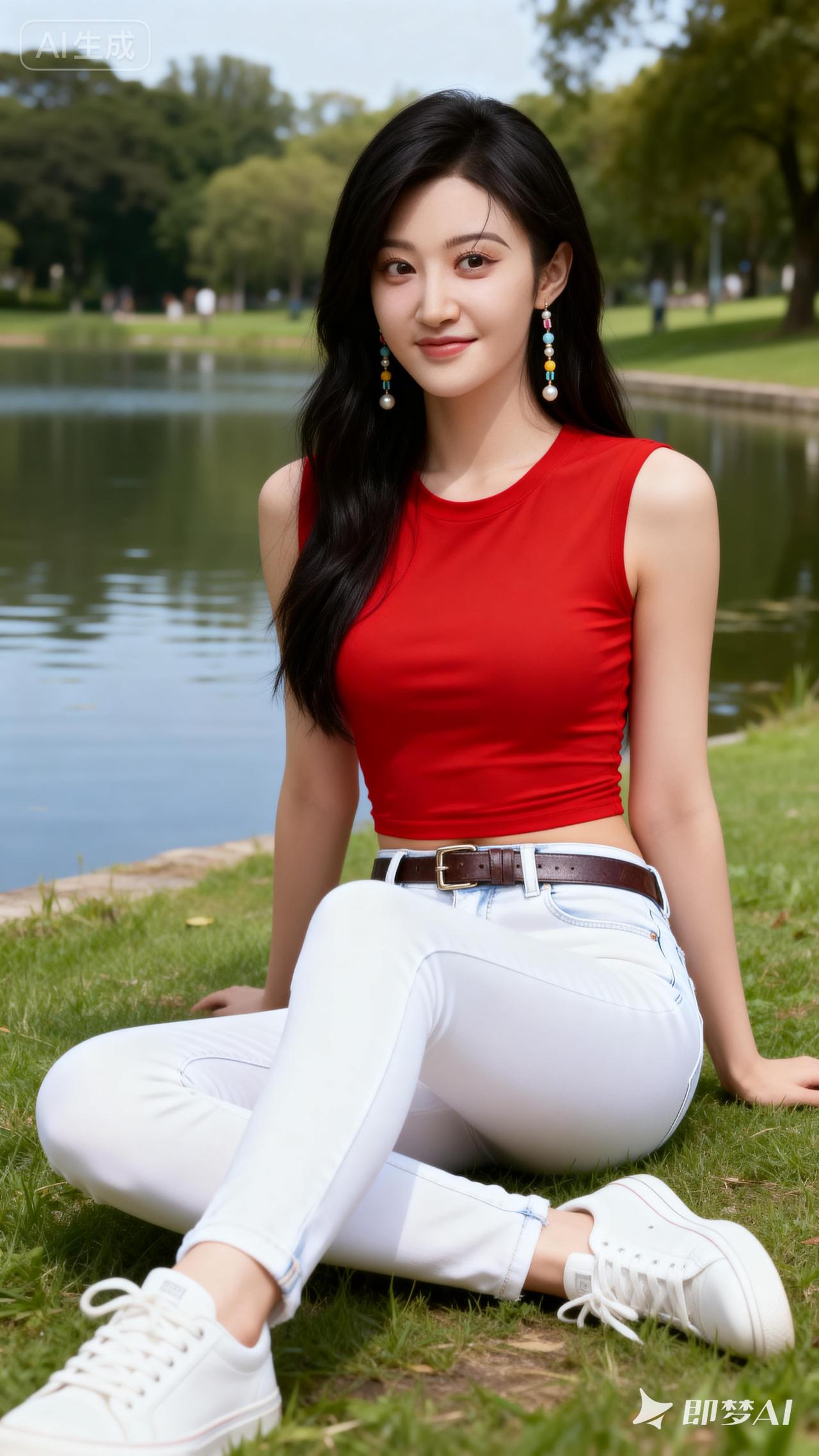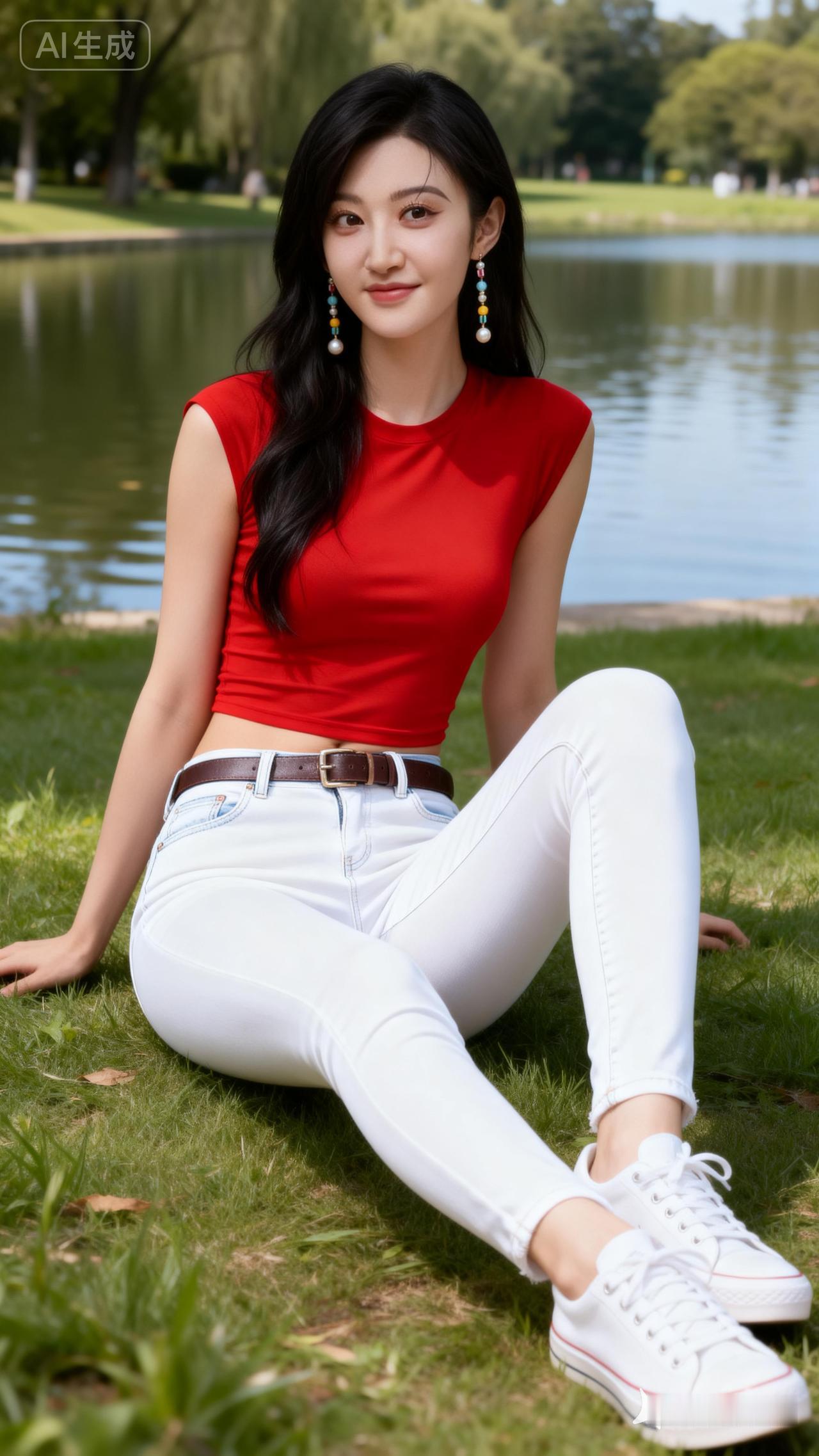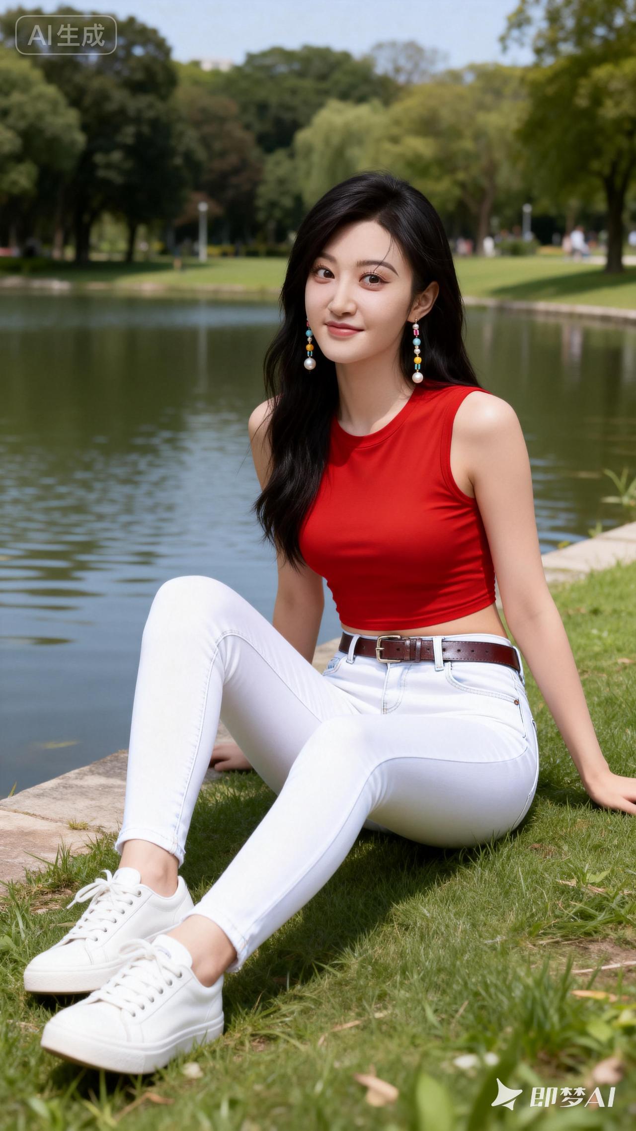 夏日清新穿搭,红色上衣+白色牛仔裤,搭配白色运动鞋,轻松自在!🌞👗👖👟