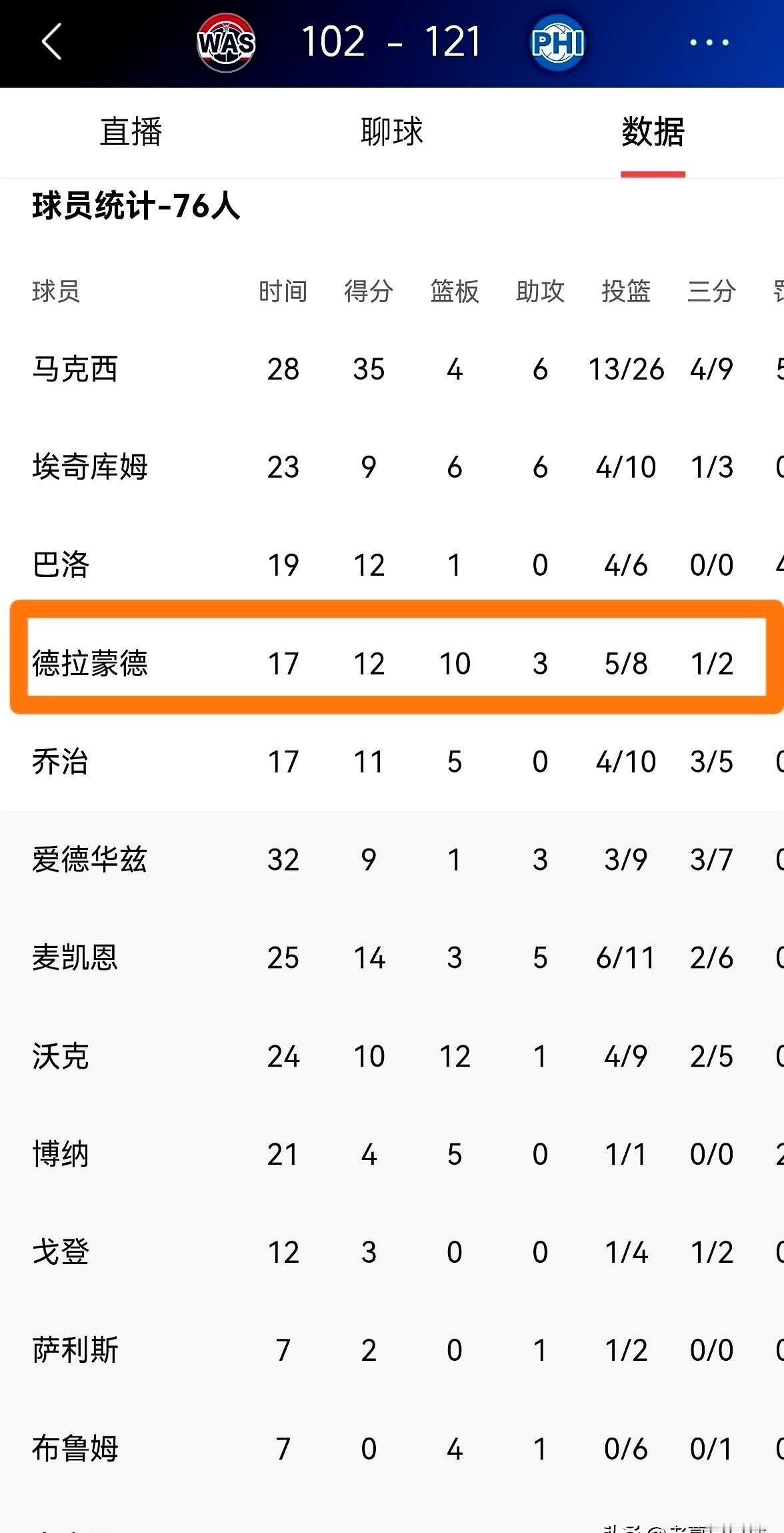 300万的德拉蒙德,要把恩比德挤走了? 打奇才那场,庄神只用17分钟就搞定12分10板,甚至投进一记底角三分。这赛季他三分命中率飙到35%,要知道他生涯才15%啊,这进步进步太吓人。最近5场场均10.8分9.2篮板,效率杠杠的。 反观恩比德,场均26.5分11.3篮板确实牛,可伤病隐患太大了,近两个赛季缺席超过40场。这身体。现在尼克斯、勇士都对他有意思,交易价值正高。 而且从战术看,庄神的机动性更适合76人现在的快节奏,恩比德还是偏阵地战。更别提他300万的年薪,性价比直接拉满。交易恩比德能释放巨大薪资空间,围绕马克西重建,操作不要太灵活。 76人管理层估计也在琢磨,是继续赌恩比德的健康,还是就此换个活法。