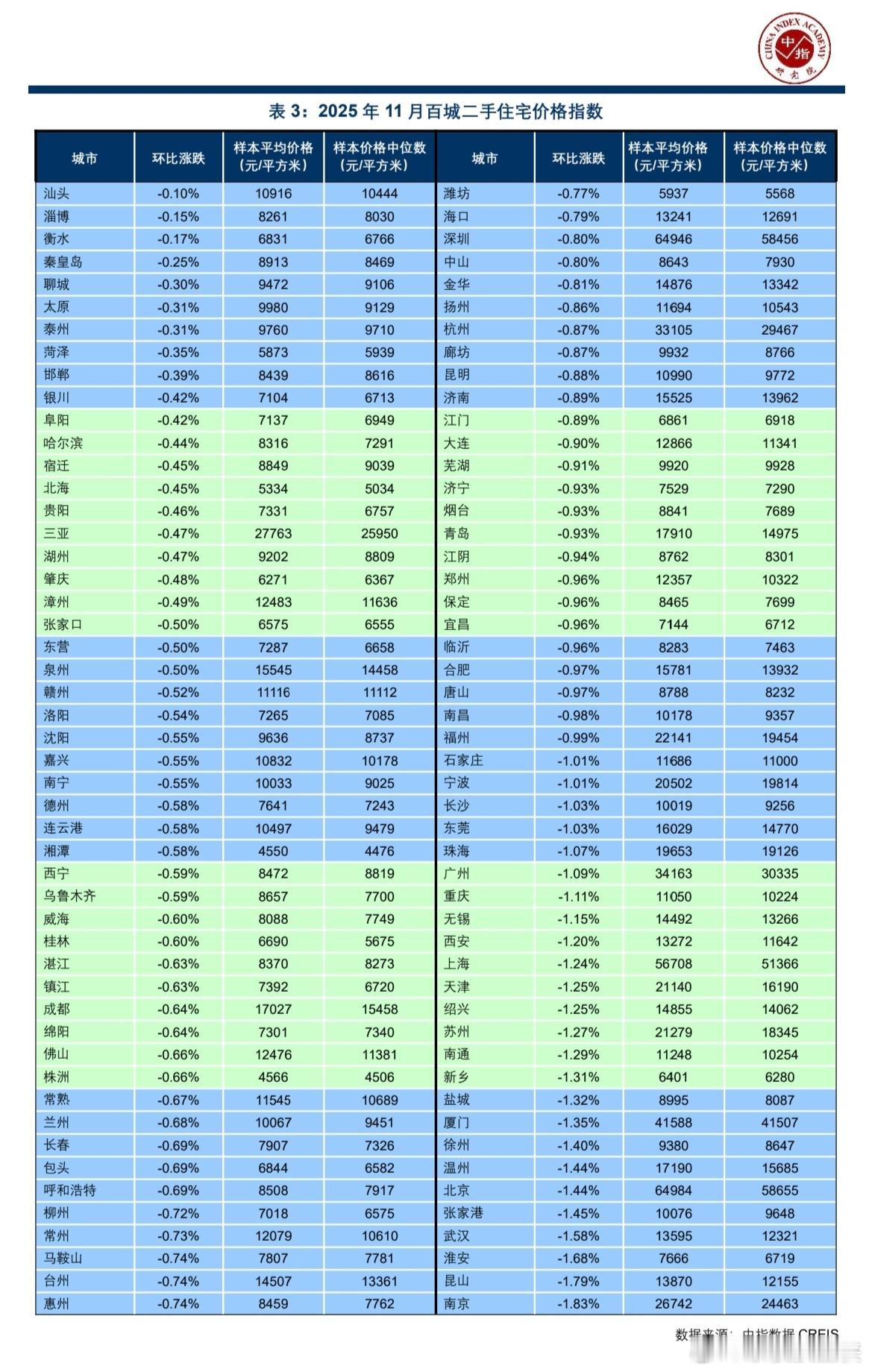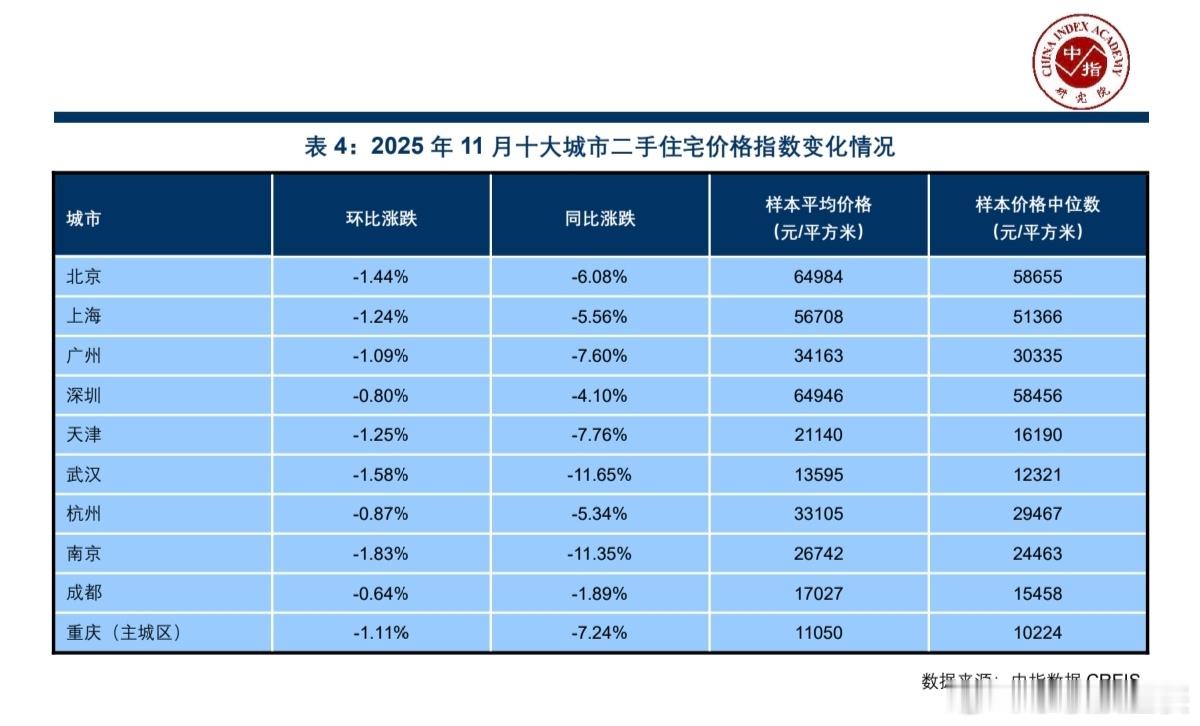 中指研究院11月百城住宅价格指数北京新建住宅商品房环比下跌0.15%,同比上涨2.12%,上海、广州同环比均上涨北京二手房环比下跌1.44%,同比下跌6.08%,百城的二手房指数同环比全部下跌。北京楼市房地产