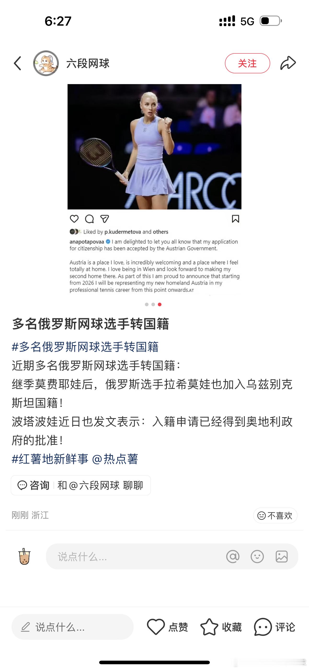 多名俄罗斯网球选手转国籍近期多名俄罗斯网球选手转国籍:继季莫费耶娃后,俄罗斯选手拉希莫娃也加入乌兹别克斯坦国籍!波塔波娃近日也发文表示:入籍申请已经得到奥地利政府的批准!wta网球talking大会