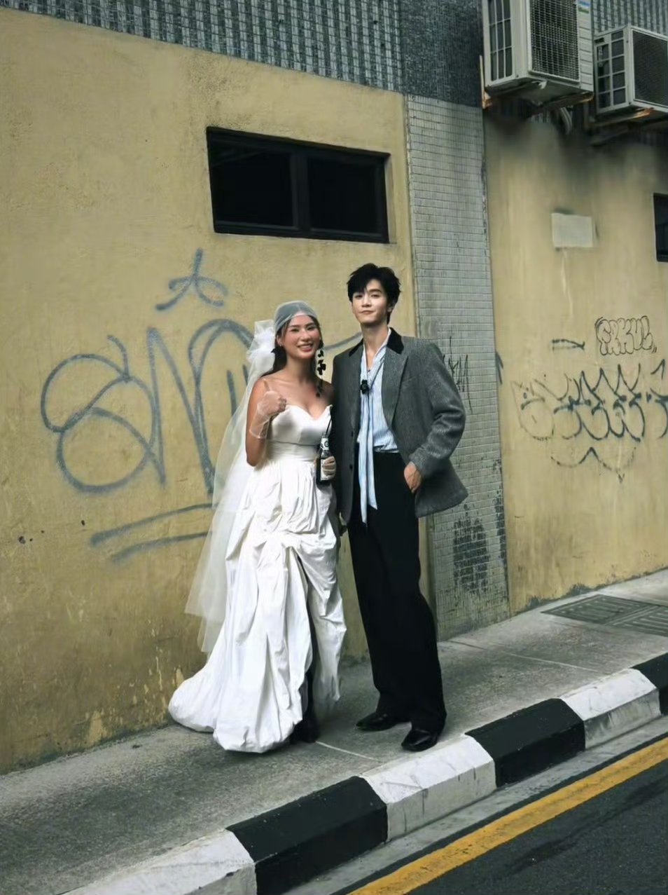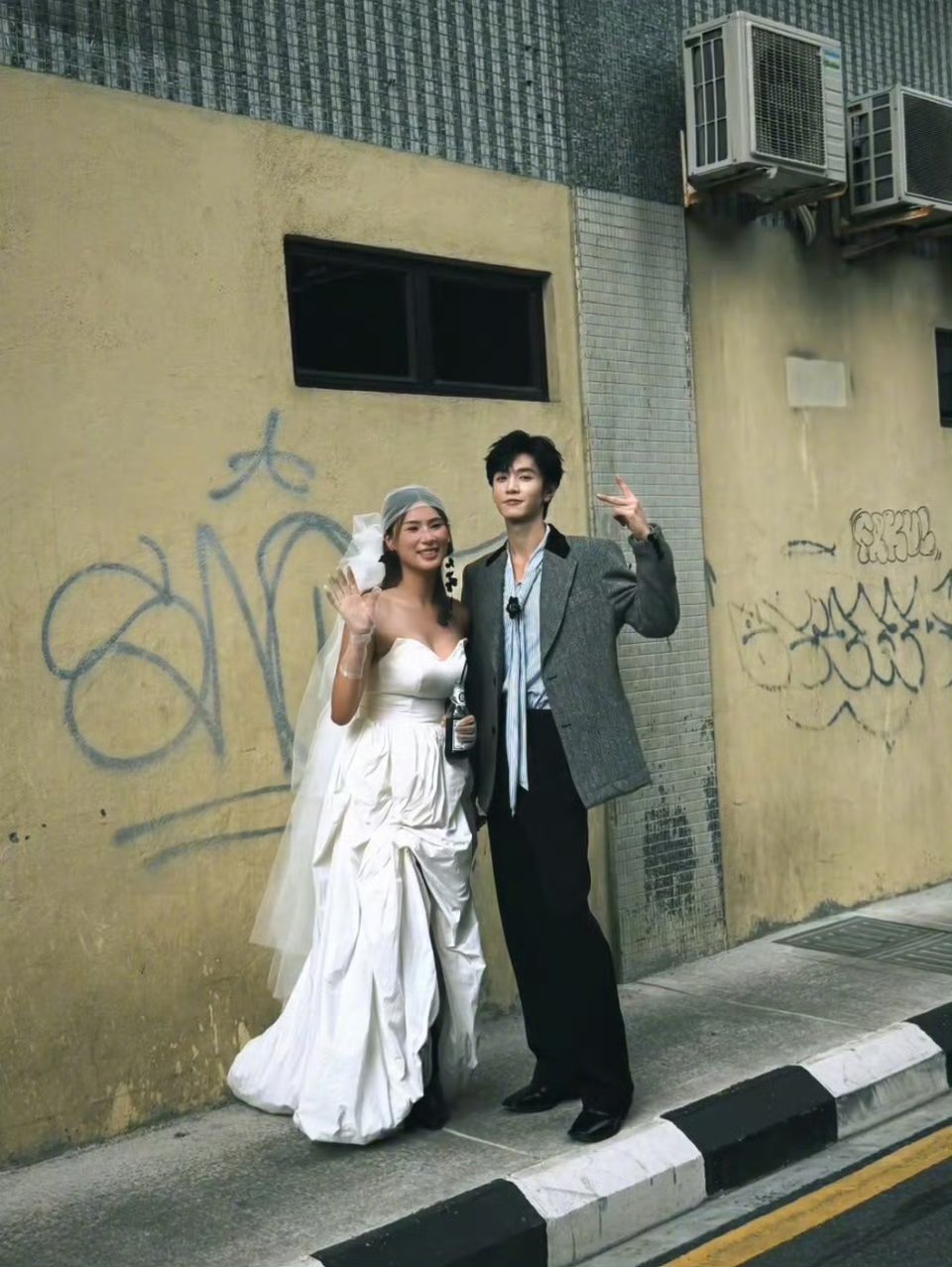 穿着婚纱的女生拍摄偶遇陈哲远,哲远就这样边走近边鼓掌祝福,还一起合影了!好羡慕啊!