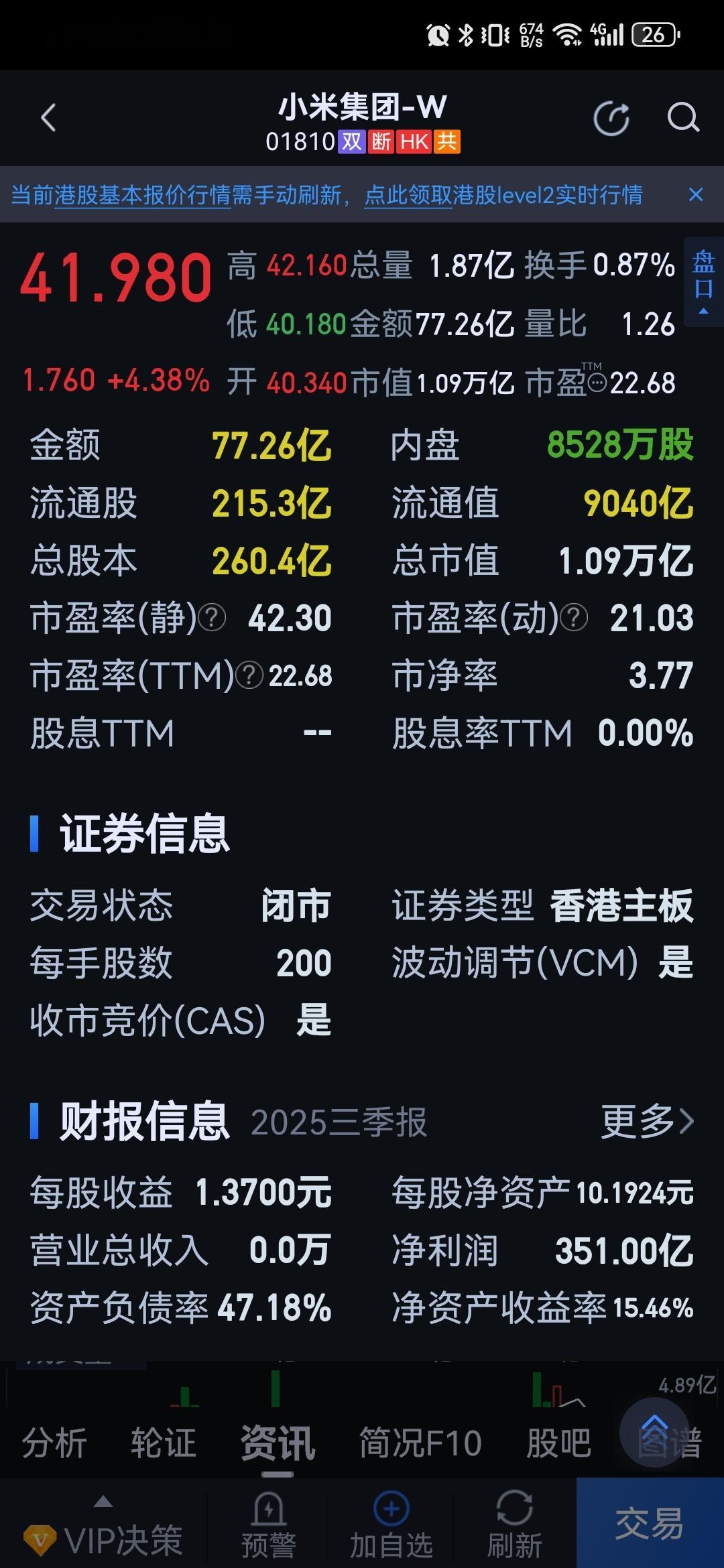 小米集团耗资约1亿港元回购240万股小米看来这次是急了,和空头硬刚上了。连续砸钱两周累计9次回购,总金额超24亿,空头正在被逼退,今天股价大幅反弹,涨幅高达4.38%,领涨恒生科技股。小米财大气粗,每天稳定回购几个亿,这谁打得过?最了解公司基本面的莫过于企业本身,他们知道自己在行业中的地位,以及未来会有哪些盈利增长点,可以说回购是信心满满的表现。小米未来增长确定性有极深的市场共识基础,一旦市场开始回暖,小米会有强力反弹。