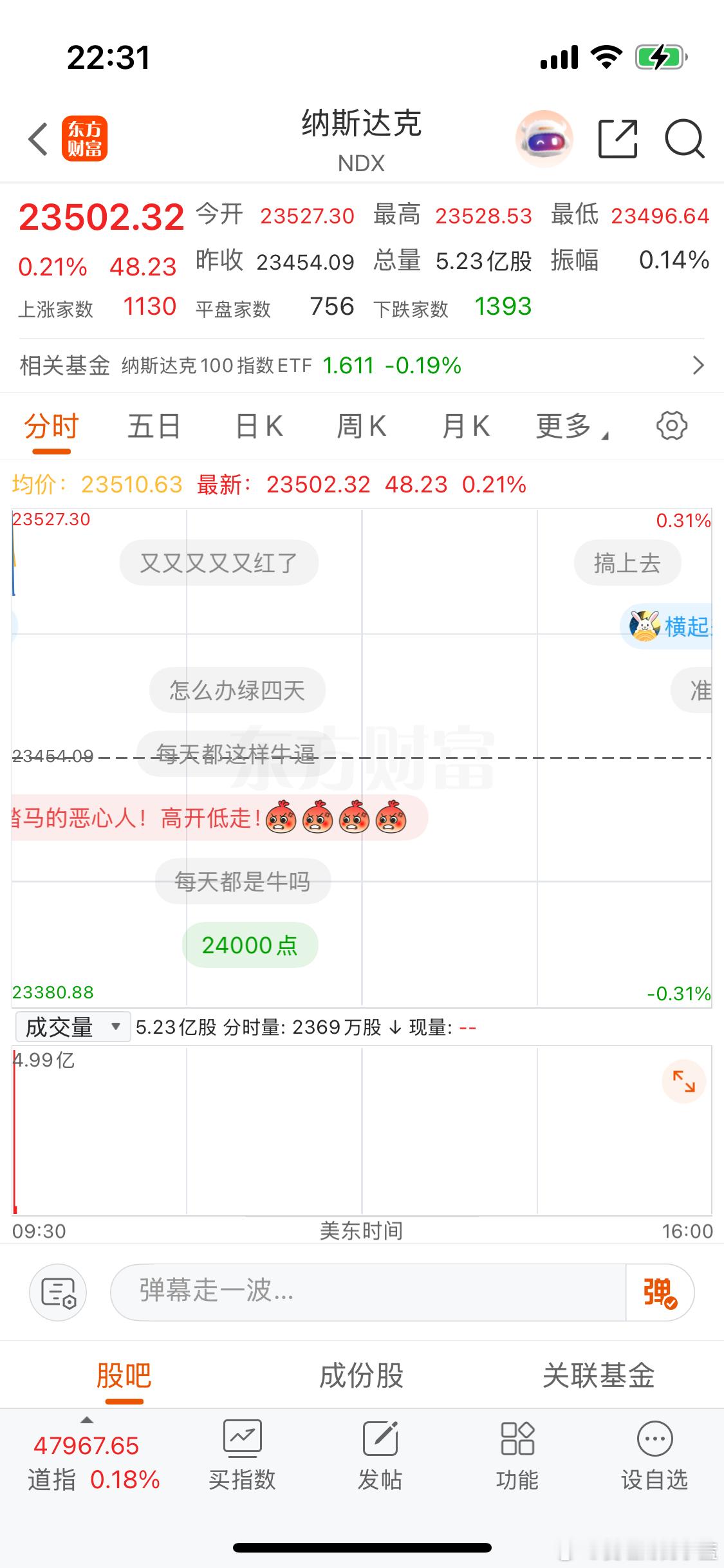 晚安。纳斯达克翻绿了…好消息是很多美股基金还是红的。