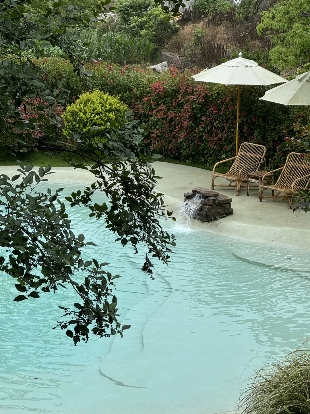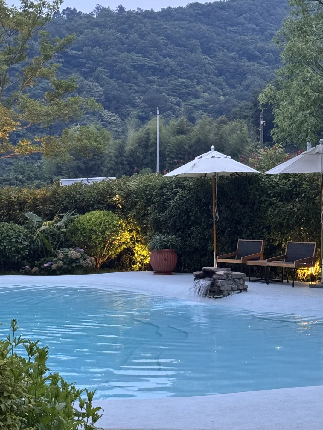 这家民宿真的绝了!绿植环绕,随手一拍都是电影感大片📸。后院那个氛围感泳池,绝对是凹造型和降温的神仙地!躺在池边躺椅上看云卷云舒,度假感直接拉满~ 😌