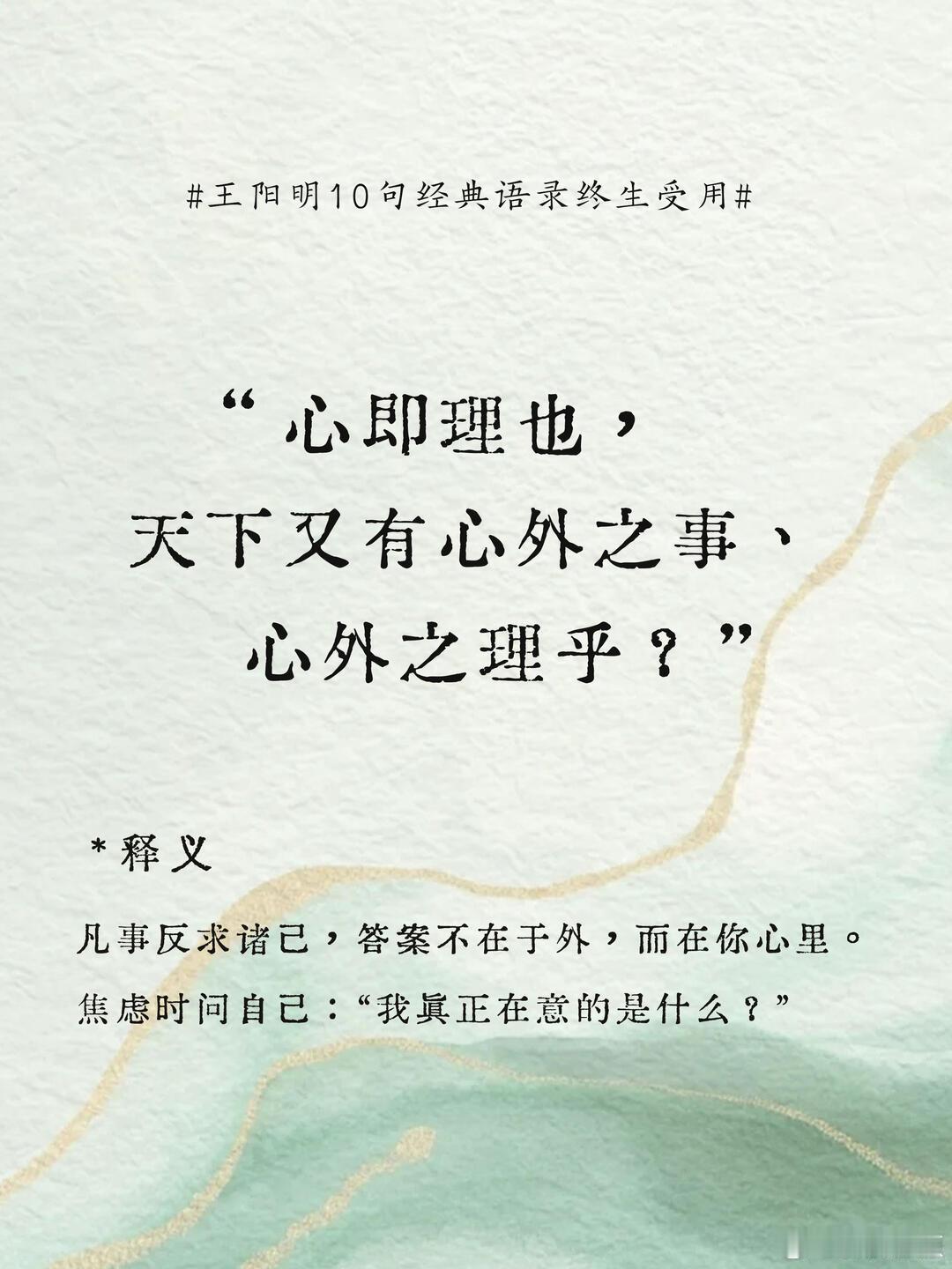 王阳明10句经典语录,终生受用! 五百年前,王阳明在龙场悟道,创立影响无数人的心学智慧。 如今读来,依然句句戳心,堪称焦虑时代的“解药”