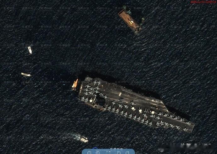 Sentinel 2 和 觅熵MizarVision 的空客卫星图都显示委内瑞拉附近的福特号似乎并未进入战斗状态。漂在美属维尔京群岛圣托马斯岛的港口附近。