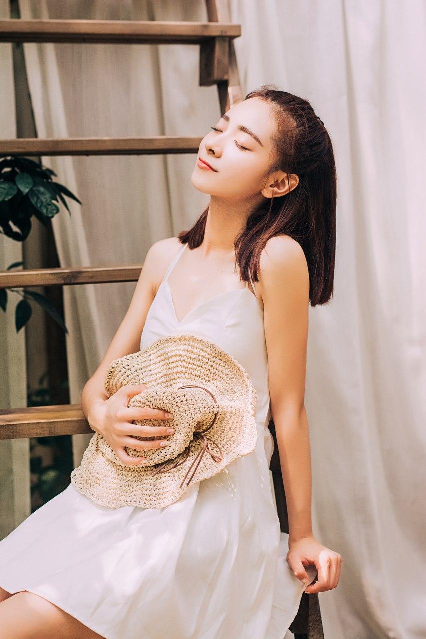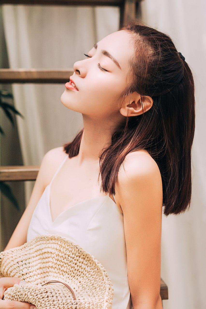 夏日午后少女悠然自得轻抚时光美少女 分享美少女美照 自然清新美少女 温柔美少女