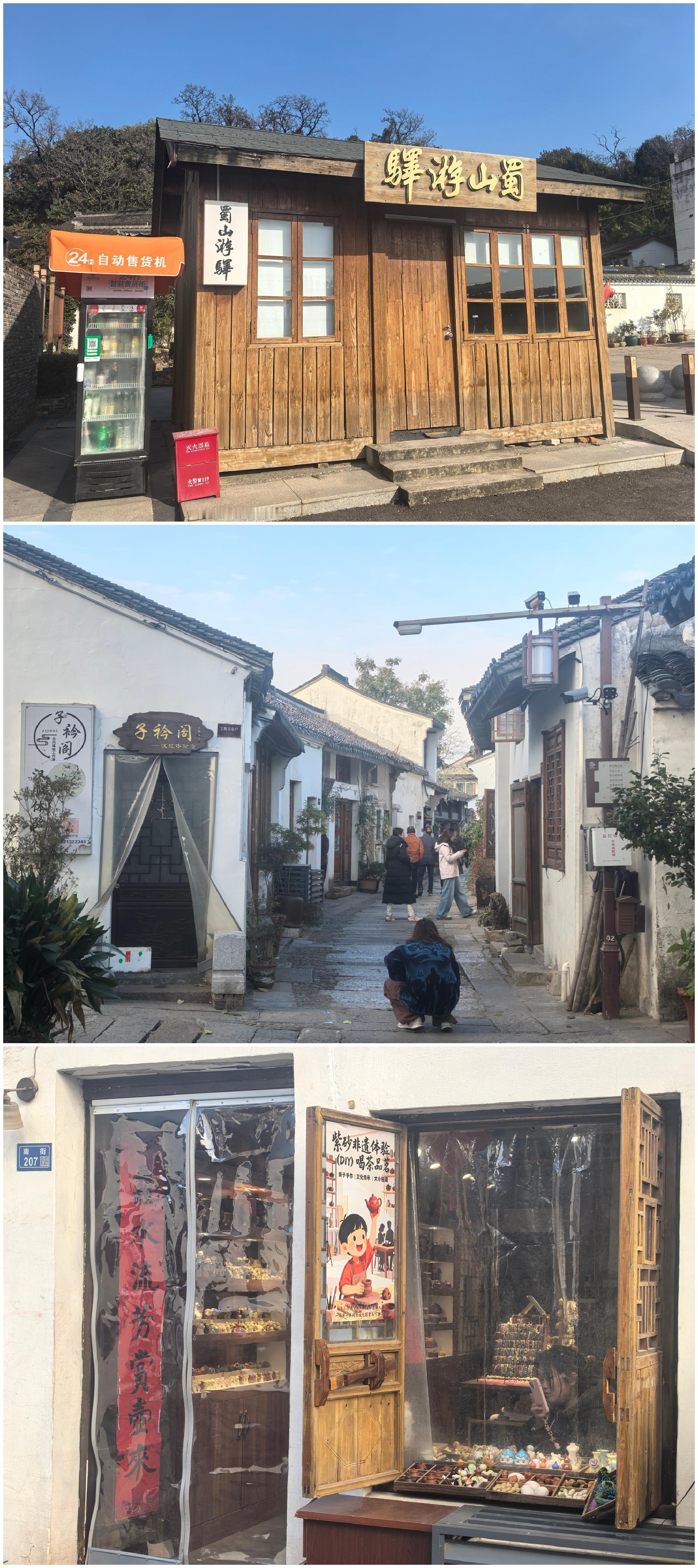 宜兴紫砂壶有着“茶具之王”的美誉,而蜀山古南街作为一条千年紫砂老街,青石板路仅两三米宽,两侧是明清留下的二层砖木小楼,“前店后坊”格局依旧,前面卖壶,后面做壶,打泥片的“哒哒”声从早响到晚,被誉为“紫砂大师的摇篮”。数智赋能新江苏创新驱动高质量奋进新征程苏写新篇章淡季走进蜀山古南街,游客少、光影柔,漫步不宽的江南小巷,享受随走随停的慢生活,上百个紫砂工作室散布巷弄,还有各种可爱造型的陶瓷摆件,看到喜欢的,几十到上百元即可带走。蜀山古南街全年免费开放,不收门票。古街紧邻东坡书院和窑湖小镇,步行即可串联游览,一天时间足够逛遍三地,感受紫砂文化、东坡文化和江南水镇风情。