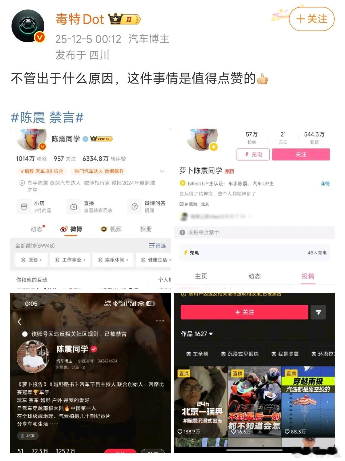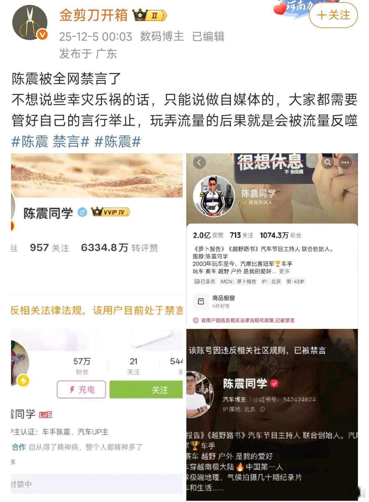 陈震被禁言之后米系花系博主都有发微博跟进米系博主集体「开香槟」花系博主的评论区一群人在刷「7000法务」难道陈震是因为这个事被封的?陈震被全网禁言陈震陈震 禁言