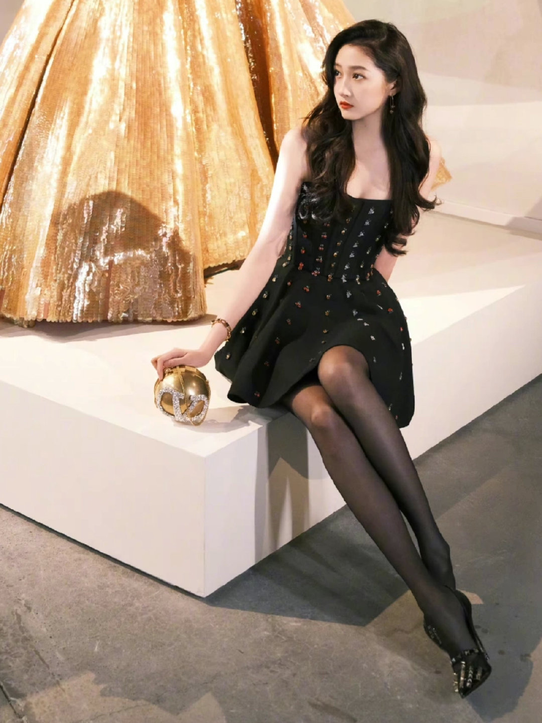关晓彤,经典黑裙妆造,妥妥的大长腿小姐姐。关晓彤