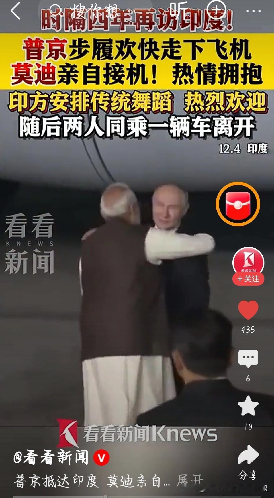 无视白宫警告!莫迪与普京的拥抱,全是硬实力博弈 机场这一抱,太有戏了!普京访印,莫迪打破常规亲自接机,两人紧紧拥抱毫不避嫌,这哪是外交礼仪,分明是公开亮态度! 背后全是实打实的利益绑定:印度36.4%的石油靠俄罗斯,每年省22亿美元;还盯着S-400防空系统、苏-57战机的大单,俄印要签超25份合作协议。 更关键的是,这是对美国的无声反击!特朗普因印购俄油加征50%关税,西方还施压印度反俄,可莫迪偏不买账。 这一抱,抱的是25年战略伙伴情,是能源和防务的硬绑定,更是大国不被胁迫的自主选择。别扯虚的,国家利益面前,真心合作比套路靠谱多了!普京出访印度对俄乌局势有何影响 如何看待印度民众对普京的欢迎仪式 普京访问印度对俄印关系有何影响 普京访印对两国关系有何影响 莫迪亲自迎接普京热情拥抱 反制美国霸权 地缘政治博弈 印度总理莫迪 图片截图于看看新闻
