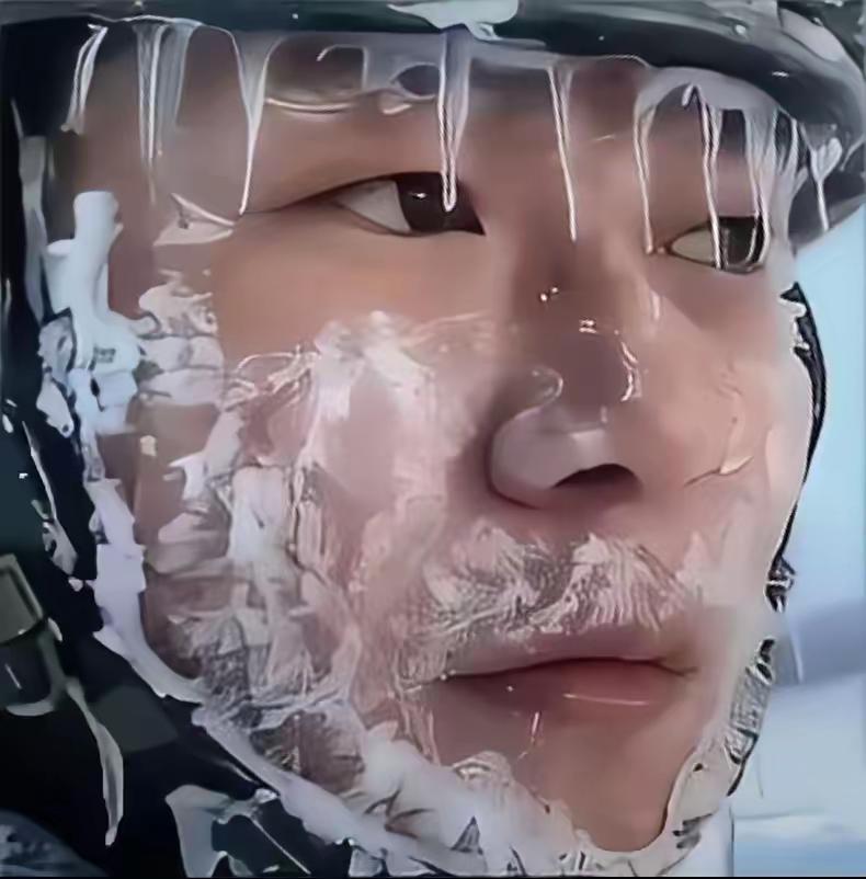 极寒里,他们脸覆冰霜,冰霜封了眉眼,封不住眼底的光,眼神仍滚烫。帽檐的冰锥、冻僵