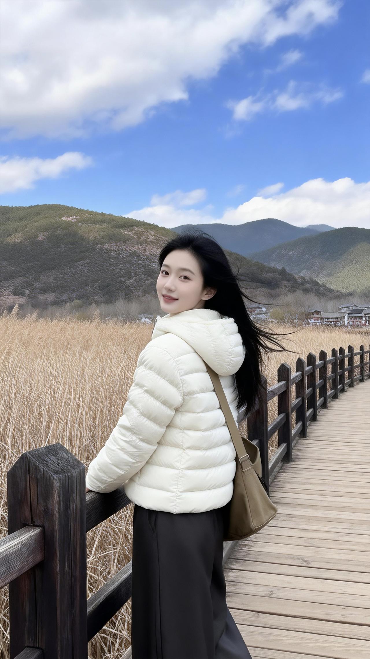 这套穿搭是秋日夜晚的休闲轻甜风~ 内搭:白色高领紧身针织衫,贴合身形,既保暖又能