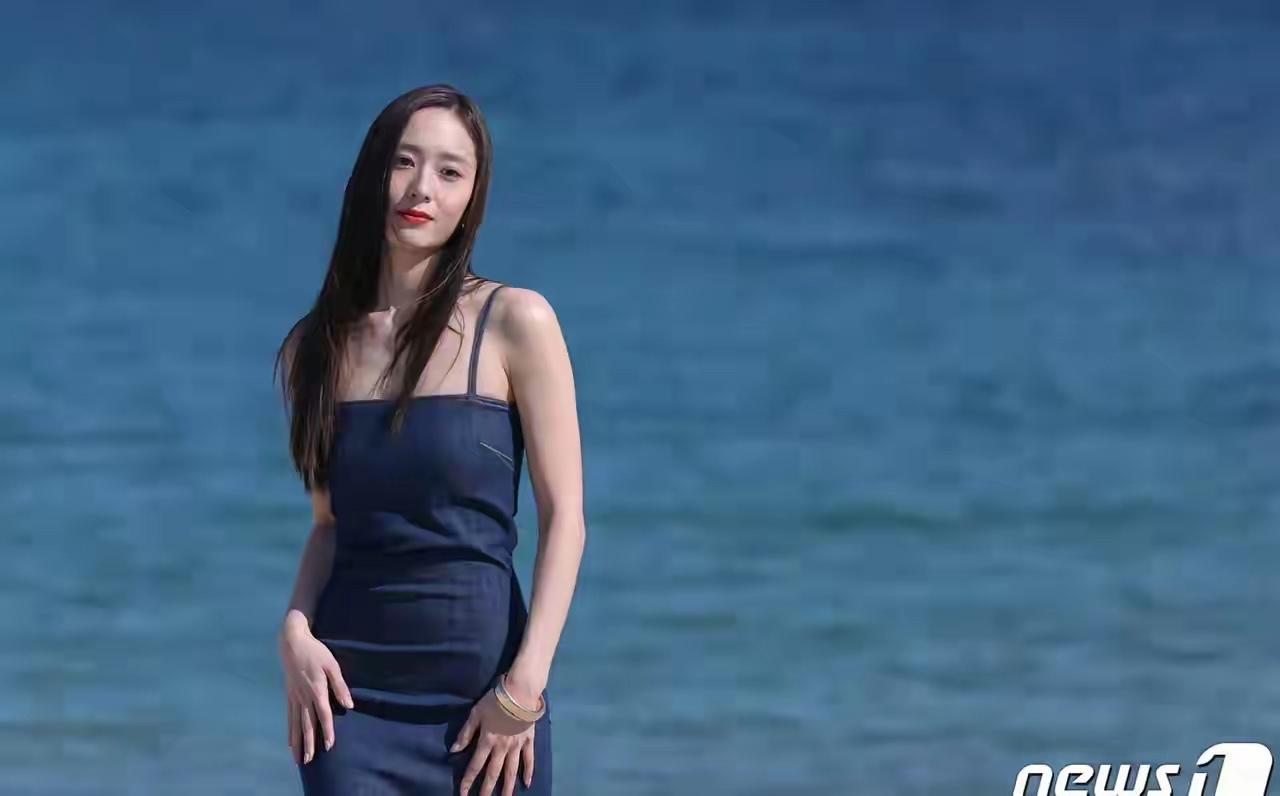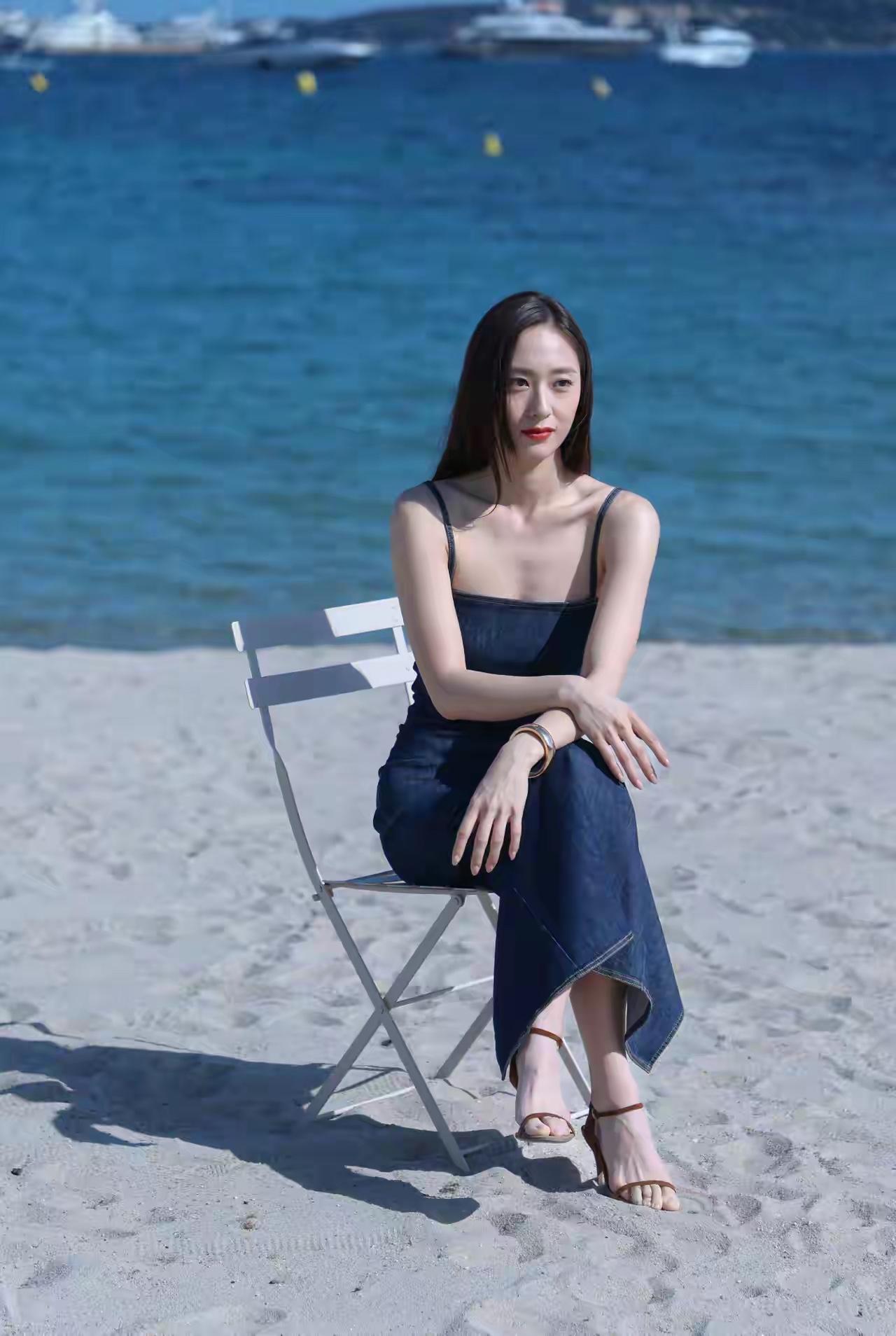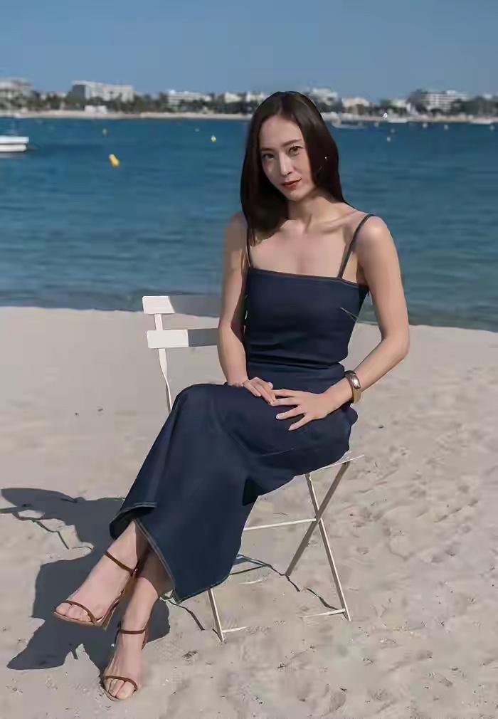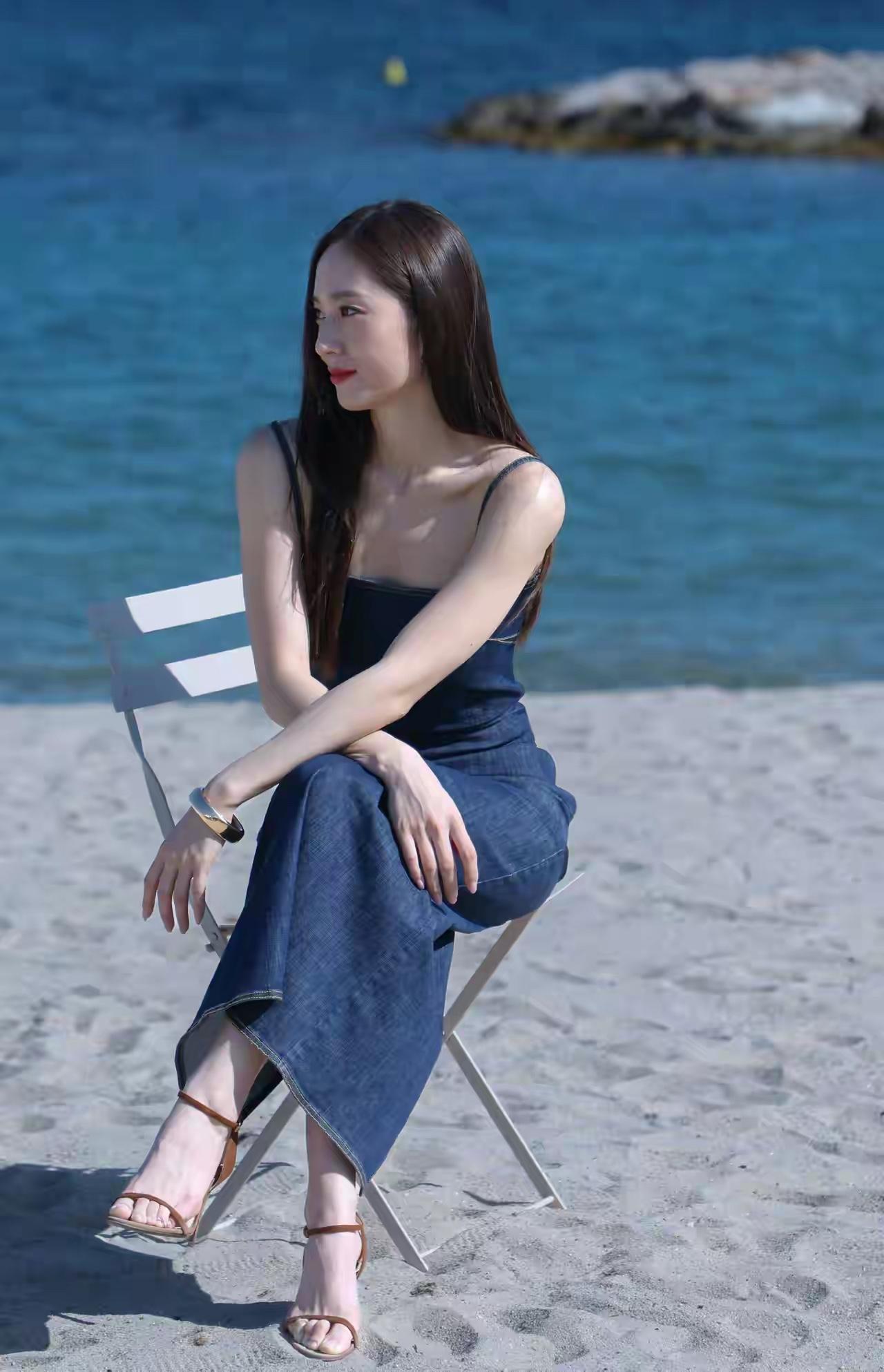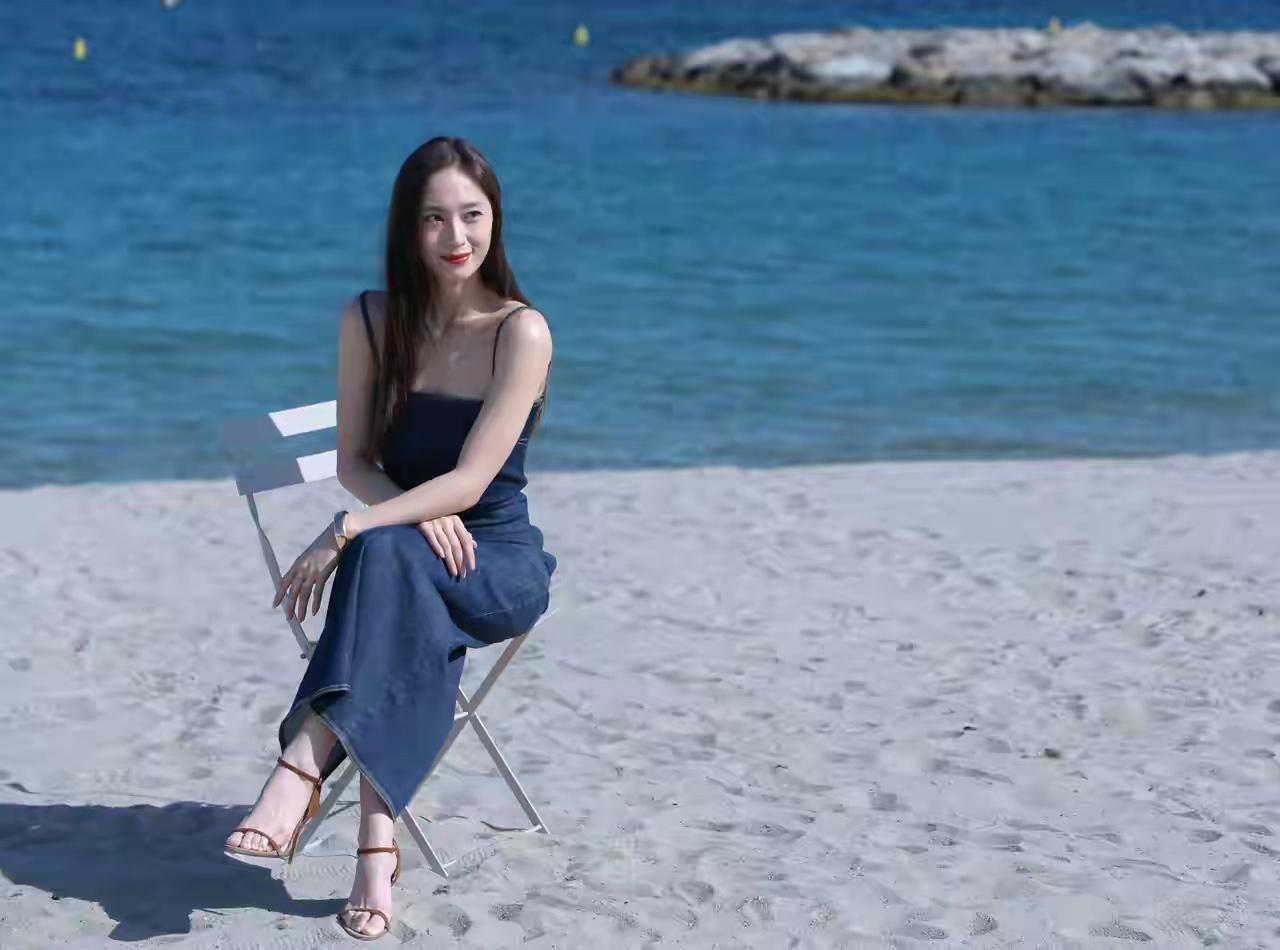 蓝色大海背景下的蓝色长裙美女美拍白色沙滩长裙 海边氛围感长裙 蓝色度假连衣裙 水蓝色长裙 气质蓝色连衣裙 海边碎花裙 蓝色沙滩裙