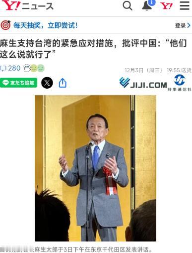 12月3号下午,高市早苗正试图在台海问题上“回缩”表态,称日方相关立场与1972年《中日联合声明》一致。而有“大嘴”之称的自民党副总裁麻生太郎却在此时激化局势,他不仅公开表达对高市早苗的支持,称其言论“符合日本一贯立场,并无不妥”,还妄称中方反应过激,言论比高市早苗更为过分,进一步挑动紧张氛围。 麻生太郎的这个发言是在自民党内麻生派的聚会当中所发表的,这也是目前自民党内唯一仅存的派阀了。麻生今天的讲话,总体上强调了三点: 第一:他认为高市早苗是按照日本过去的一贯立场发言,因此并无不妥,并且反而感到非常的欣慰; 第二:他强调虽然中国说了很多话,但中国这么不满,反而说明日本做对了; 第三:他强调到目前为止,本轮的矛盾并没有给日本带来多大的冲击,因此无需过于担心。 可以说,麻生太郎今天的这个发言是在自民党内麻生派的聚会当中所发表的,这也是目前自民党内唯一仅存的派阀了。 他那句“本轮的矛盾并没有给日本带来多大的冲击,因此无需过于担心”,简直是对日本经济现实的彻底无视,完全暴露了这位老牌世家政客与民间基层的严重脱节。 中国作为日本连续多年的最大贸易伙伴,2024年两国贸易总额高达3180亿美元,这个数字占到日本GDP的7%以上,相当于每14块钱的日本经济产出里就有1块钱和中国市场相关。 关键是这种绑定早已深入日本经济的毛细血管,中国市场吸纳了日本近20%的出口额,小到半导体材料,大到汽车零部件,几乎撑起了日本高端制造的半壁江山。 就拿日本引以为傲的半导体产业来说,信越化学、JSR等企业垄断了全球7成以上的光刻胶市场。 而中国正是他们最大的买家,东京电子4成以上的营收、斯库林控股43%的销售额都来自中国,2024年日本对华半导体出口就达1.31万亿日元。 要是真按照麻生说的“无需担心”继续激化矛盾,这些企业首先就得陷入停摆,相关上下游100多万就业岗位都会跟着悬在空中,这可不是“没多大冲击”能轻飘飘带过的。 汽车产业的处境更能说明问题,日本汽车工业是国民经济的支柱,2024年中国进口的70万辆汽车 里,日本品牌就占了22.8万辆,雷克萨斯、丰田的高端车型在华持续热销。 最重要的是产业链的互补性,中国车企需要的电池管理系统、电驱动技术等核心零部件高度依赖日本进口,而日本特种钢出口的三分之一都流向中国,直接支撑着其本土汽车制造的产能。这种你中有我的利益共同体,早就让日本汽车行业离不开中国市场。 可麻生在派阀聚会上的发言里,对这些关乎产业命脉的细节只字未提,仿佛那些依赖中国订单生存的中小企业和产业工人都与他无关。 事实上,关系恶化带来的冲击已经实实在在落在了日本民间。2025年11月以来,就因为高市早苗此前的挑衅言论,中国游客出现了大规模退订潮,超30%的赴日行程被取消,54万张机票退订,部分航班取消率高达82%。 要知道中国游客虽然只占日本外国游客总量的20%-24%,却贡献了35%的消费额,2025年前9月消费就达827亿元,人均支出是欧美游客的2.3倍。 野村研究所早就测算过,这场退订潮将导致日本旅游业年损失1.79万亿日元,GDP增速直接下降0.29%,每减少100万中国游客,就有2.3万个岗位消失。 这些数据就摆在日本政府的案头,麻生却能在派阀聚会上说“没多大冲击”,足见他对基层从业者的疾苦有多漠视。 而且日本经济本身早已不堪一击。2025年三季度日本实质GDP环比下降0.4%,年率减少1.8%,出口低迷直接拉低了整体经济,还出现了股市债市汇率三杀的局面。 在这样的背景下,麻生还在为高市早苗的言论站台,宣称“中国不满说明日本做对了”,完全无视中国需求每扩大1%就能为日本带来28亿美元经济红利的基本事实。 这种脱节根源在于他根深蒂固的传统世家政客精英思维。作为自民党仅存派阀的核心人物,麻生太郎长期身处权力顶层,接触的都是同阶层的政客与大企业高管,根本不会去了解依赖对华出口的中小企业主的焦虑,也不会在意旅游业从业者的生存困境。 笹川日中友好基金2024年的调查显示,仍有42.5%的日本民众认为“为维持和发展日本经济,对华交往不可或缺”,但这些民间声音显然传不到麻生的耳朵里。 他所在的派阀聚会本就是精英圈层的自说自话,在这里发表的“无需担心”言论,不过是脱离现实的自我安慰,可这种精英主义的呓语,最终要让日本的普通民众和基层产业来买单。 日本学者前泊博盛早就怒斥过,高市早苗缺乏历史认知的挑衅言论正把日本推向经济崩溃的悬崖,一旦失去中国市场,日本将一无所有。 这话已经被数据反复印证,可麻生太郎还在火上浇油。 他所谓的“一贯立场”,本质上是拿日本经济命脉做赌注的危险游戏;他口中的“无需担心”,不过是世家政客对民间疾苦的习惯性漠视,这种与基层彻底脱节的精英思维,正在把日本拖向更危险的境地。