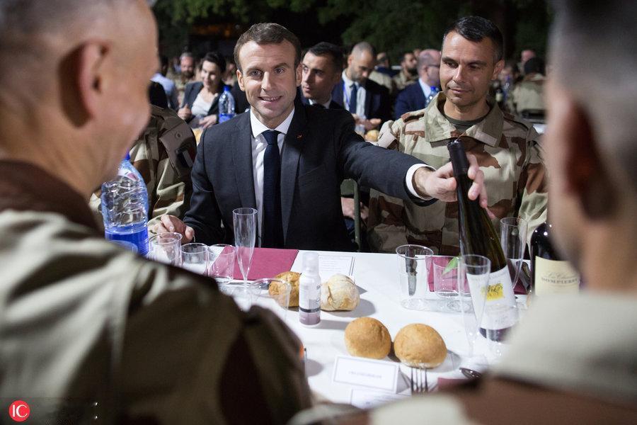 马克龙一个人吃饭时挺闲情逸致的,鲜花缀餐桌。他和妻子士兵一起吃饭很豪迈,美酒不可