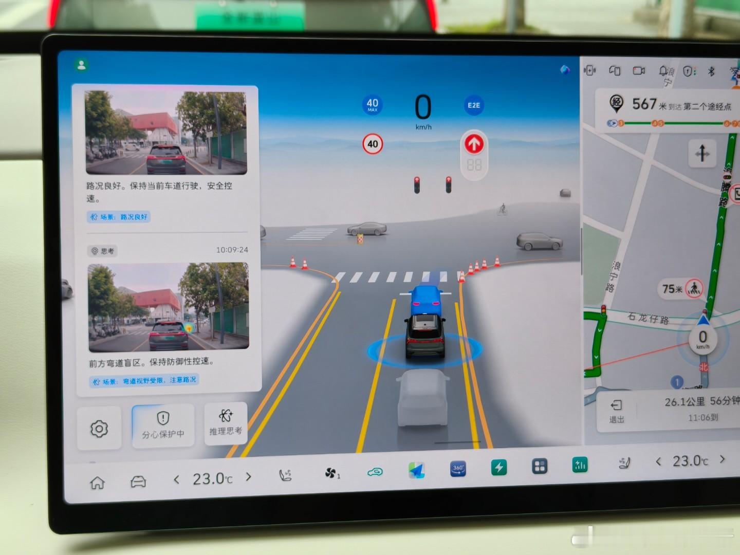 10 月下旬,电动星球受邀参加了新款魏牌蓝山的辅助驾驶试驾活动,重点体验升级至 VLA 技术路线后,其辅助驾驶的体验会有如何变化。该段试驾路线涵盖相对复杂的城中村、快速路和普通城市路段,再加上偶发的修路、封路等事件,能够相对真实地还原魏牌蓝山 VLA 版本辅助驾驶的能力。针对其表现,可以先下一个简单结论:其水准足以应付深圳郊区的城区路况,通过相对复杂的路口,避让往来的交通参与者。但另一方面,有一些细节仍需打磨。基于 VLA 实现的相关功能仍有可观的优化空间,横向比较技术路线接近的辅助驾驶方案,给人印象较深刻的记忆点还不够多。体验下来,升级到 VLA 的魏牌蓝山,令人印象比较深刻的有以下几点。其一,对「距离感」把握较好,跟随前车起步动作迅速,且距离得当。这种体验,基本与人驾行为差不多,也能大幅减少「辅助驾驶羞耻感」,不用担心后车「滴滴滴」。不过,路口起步就保守很多,甚至遇到过因为起步过晚而险些错过红绿灯的情况(是的,有个路口的绿灯时间不到 20 秒,而等待时间超过 120 秒)。其二,补充一下,纵向的控制体验比较柔和,几乎没有出现急加速、急减速的情况;横向变道表现不太稳定,多数情况下变道快速、果断,且非常「敢」变;但在绕行的时候,果断性不足。其三,有些时候,魏牌蓝山的这套「全新一代 CP Master 辅助驾驶系统」会做出一些很极限的操作,比如穿越路边路两旁障碍物的时候,就偏好「擦肩而过」。会有轻微的惊吓感。其四,博弈的表现,主要是与道路参与者、转弯位车辆之间的博弈表现得比较保守,甚至有些过分谦让。这时候如果不「效率接管」,也就是踏板给一下反应,复杂路口可能会过不去。最后,针对 VLA 的能力体系,新蓝山其实有一些想法,比如用语音命令让其超越前方大车等。不过实际试过后发现,只有特定词句可以触发对应能力,这套系统还不能理解模糊指令,所以说想法很好,但依然有提升空间。长城汽车VLA首搭魏牌蓝山