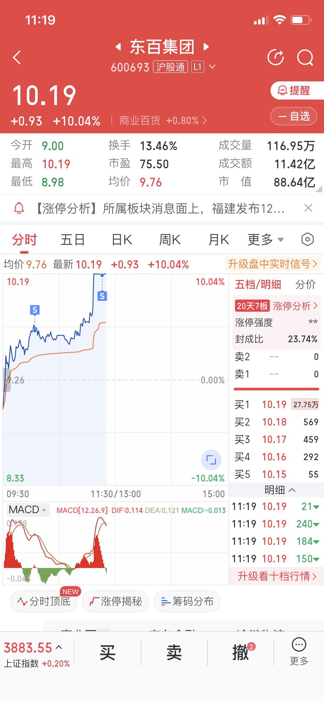 12月5日清仓东百集团,当时午盘涨停就出手了,结果就赚了800块,真的血亏。这可是我的重仓股,三分之一的仓位都压在里面,结果收益这么可怜,风险和收益完全不成正比。 想想12月2日午后福建本地股走高,东百集团直线涨停,当时要是能多拿拿说不定能赚更多。再看看12月18日的市场,A股成交缩量,各板块表现不一,中百集团还上演了“地天板”。这市场变化太快,我这次在东百集团上真的没把握好,以后投资可得更谨慎了。