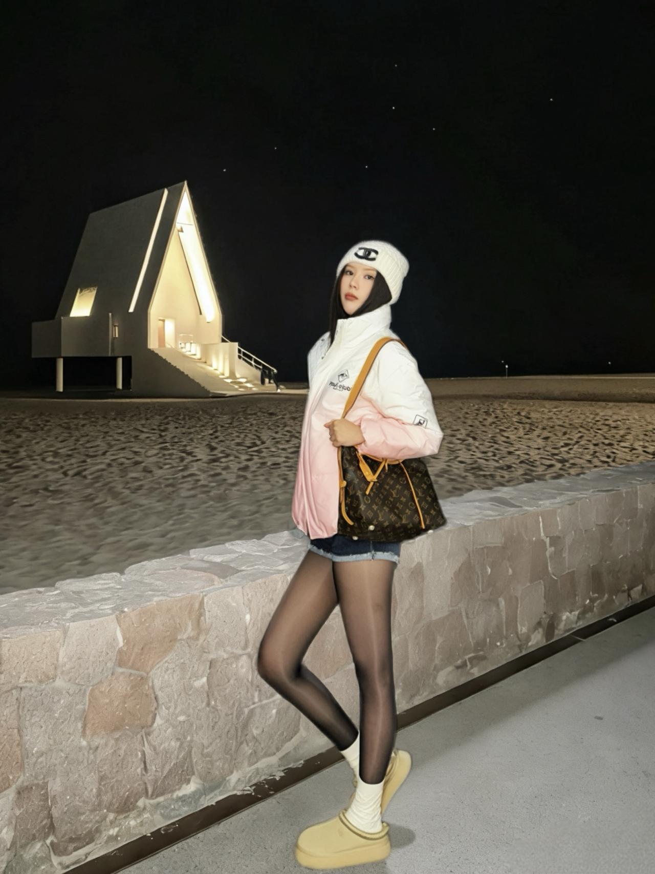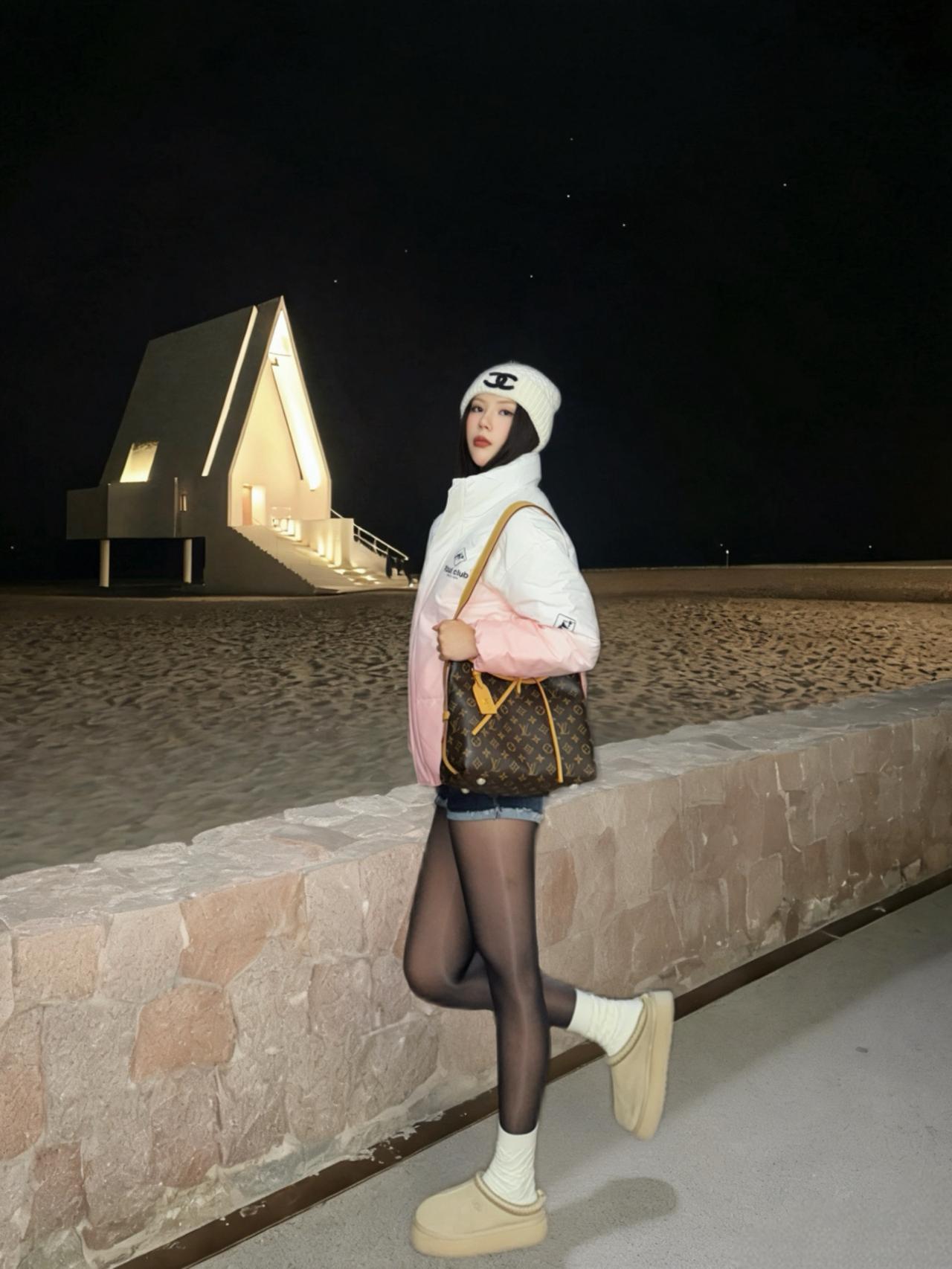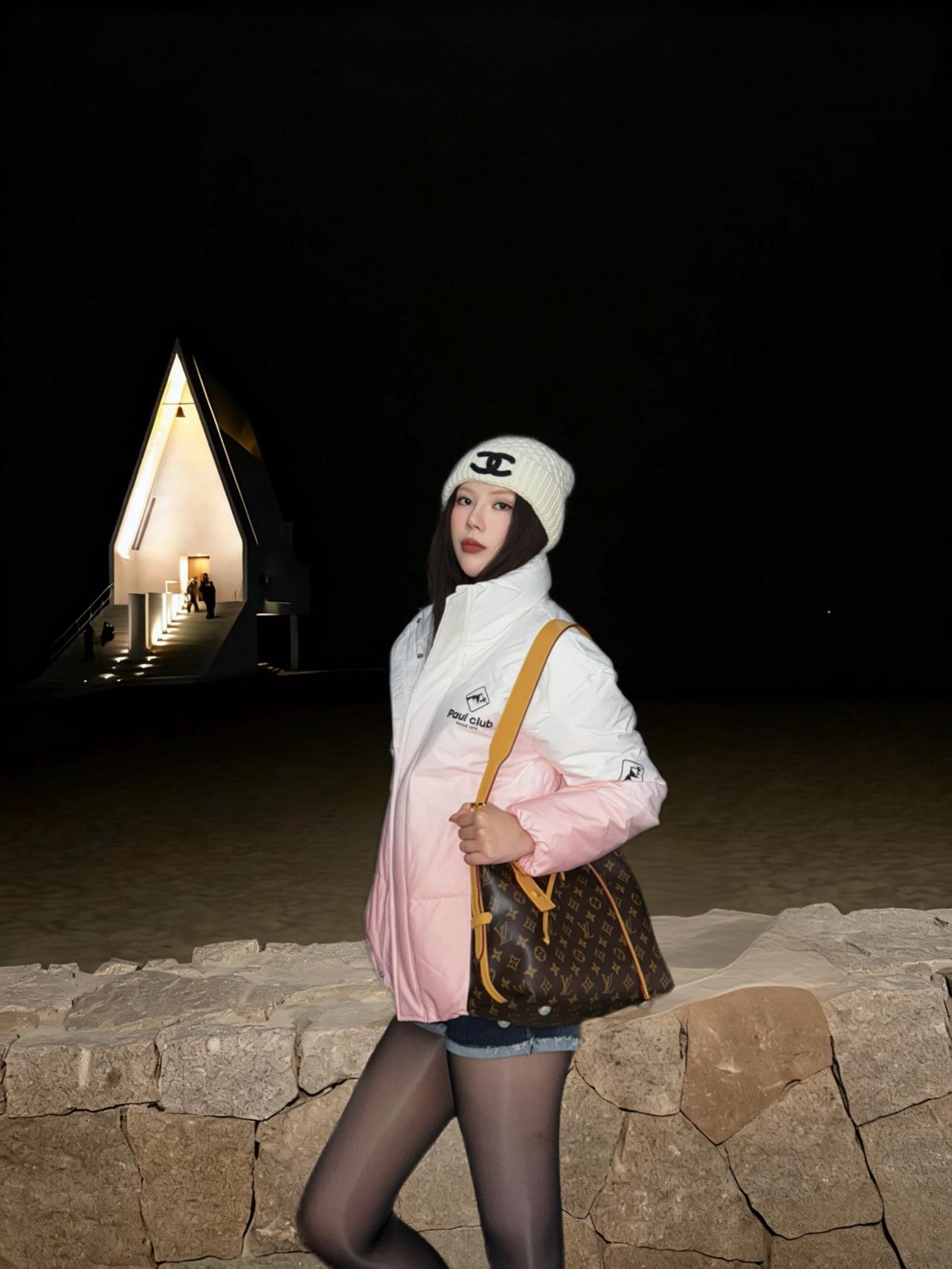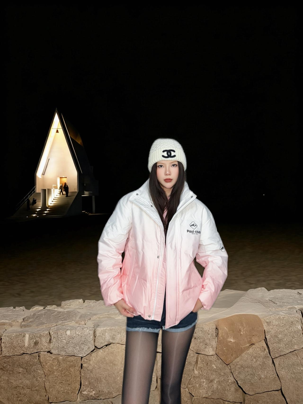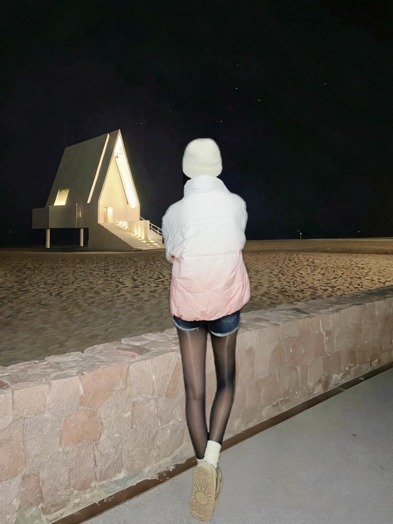 夜景和闪光灯/这件羽绒服搭配黑丝美翻啦🥹🥰|||这件粉白渐变的外套也太戳我了! 软乎乎的但版型很挺穿上自带甜酷感 配短裤+黑丝是辣妹风 最近降温天天穿它 抗风还不压个子 面料滑溜溜的巨好打理黑丝酷穿搭 裙裤配羽绒服 黑色羽绒穿搭 黑丝大衣搭配 黑丝靴穿搭 红色格子羽绒服 白鸭短款羽绒服