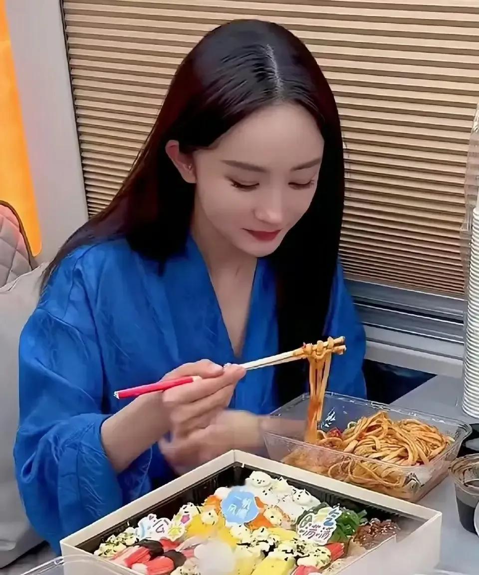 杨幂拿筷子戳了半片寿司,镜头扫过,那米粒连凹痕都没掉。 我盯着回放三遍,确认她牙齿压根没碰上鱼片。 下一秒她端起面碗,筷子在汤里画圈,汤面纹丝不动,旁边摄影师喊“好,换角度”我瞬间懂了,这哪是吃饭,这是给食物拍遗照。 评论区有人贴出宋佳啃冷馒头的剧照,渣子掉领口,她随手抹掉继续嚼,腮帮子鼓得真实。 我转头看自家餐桌,剩半碗粉干,我三口扒完,牙缝塞满也懒得管,这才叫活人进食。 明星把咀嚼当成表演,观众把表演当成日常,两边都累。 假吃拍多了,真饿也咽不下。 我宁愿看演员脸上长肉,也不想看他们筷子悬空。
