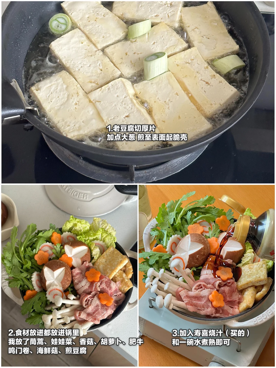 🥄今日菜单: 小锅寿喜烧 辣咖喱炸猪排饭 荔枝起泡酒 . 详细做法步骤图往后翻~ . 上周末在家放松了一下~ 做了热乎的寿喜烧和辣味咖喱炸猪排🥩 喝点微醺小甜酒 🍸冬日宅家的幸福感拉满~ . 寿喜烧我很喜欢放煎过的豆腐 多煮一会很吸味~ 炸猪排蘸上辣乎乎的咖喱口感很丰富! 配上小甜酒刚刚好~ . 喜欢微醺感的姐妹可以试试我今天喝的青荔之泉~ 入口清甜~带着浓郁的山竹和荔枝风味(都是我爱的水果耶) 混合着清新的茉莉花香🕊️ 冰镇(推荐!)完来一口 解辣解腻 水灵灵的 舒服~ .