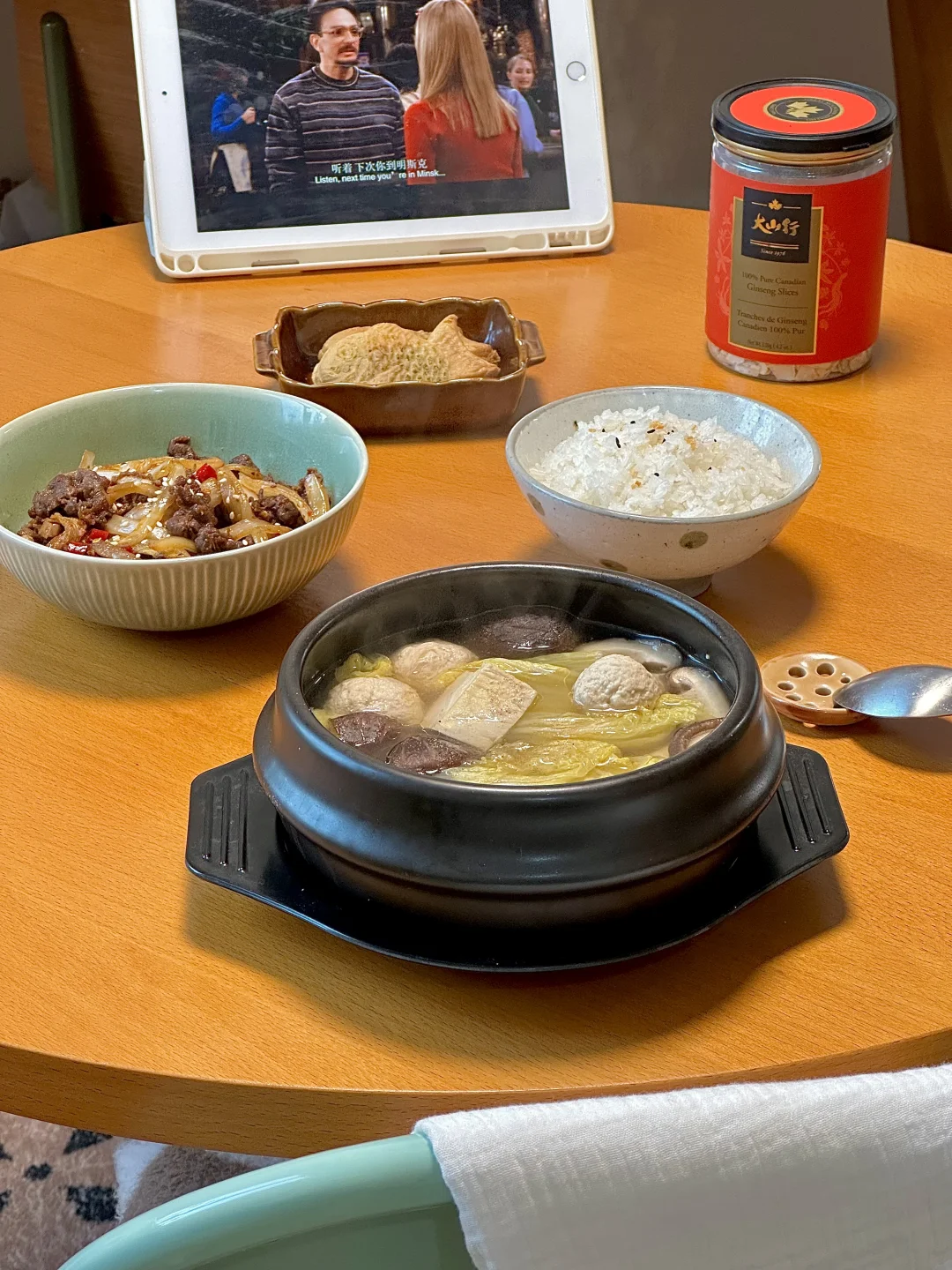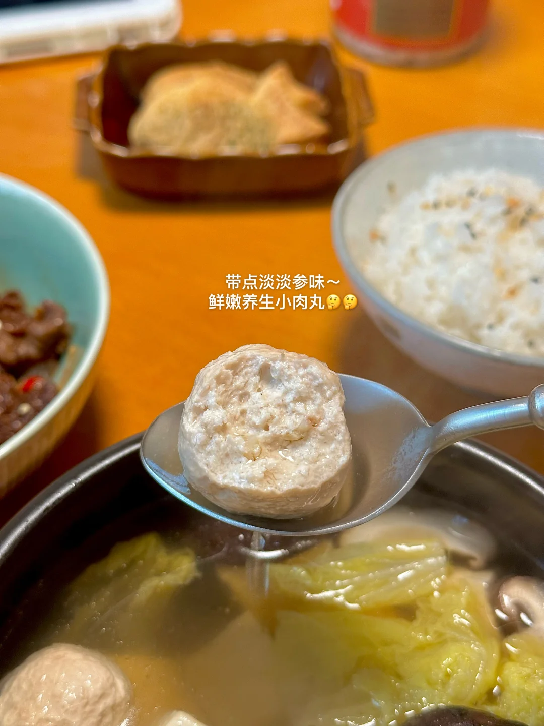 🥄今日菜单: 参鸡肉丸豆腐热汤饭 白菜辣炒牛肉 抹茶鲷鱼烧 . 详细做法步骤图往后翻~ . 天冷就要吃点热乎乎的汤饭啦~ 正好消耗冰箱里的鸡胸肉 做成丸子口感好很多✌🏻 加了一点西洋参 妥妥养生小肉丸哈哈哈哈😙 清淡鲜美口 冬天来上一口真的满足~ . 清淡的汤饭配一个偏鲜辣的白菜炒牛肉~ 脆脆的菜杆很下饭! . 冬天喜欢喝点的西洋参泡水🍵 前段时间让朋友在加拿大那边,拿回来的 大山行西洋参,它在当地华人圈口碑特别好 用得都是精选五年西洋参切片😬 凡是回国都带一两罐当手信送人~ 春节到了它们家西洋参有整支的,送朋友和长辈 都是不错送礼首选~平常煲汤也可以放一点哦 .